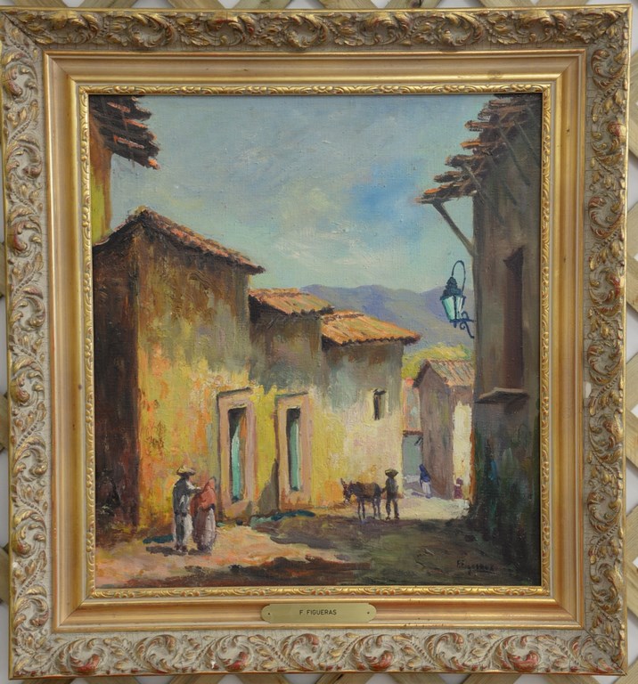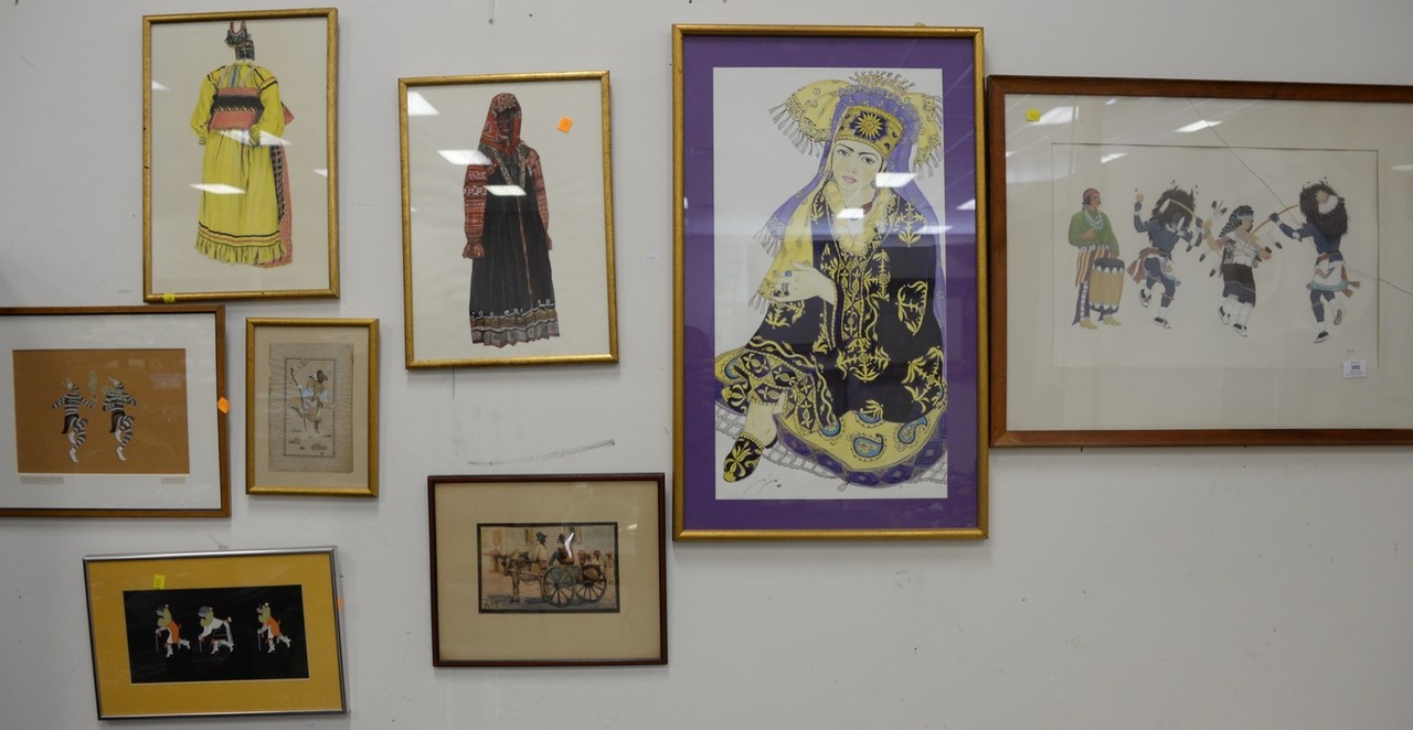 Group of eight framed South American gouache, watercolor and oil paintings, one signed Lola 98, two of Indian dress, one of Indian chiefs signed MA-PE. WI. 12 x 14 1/2 to 17 x 16