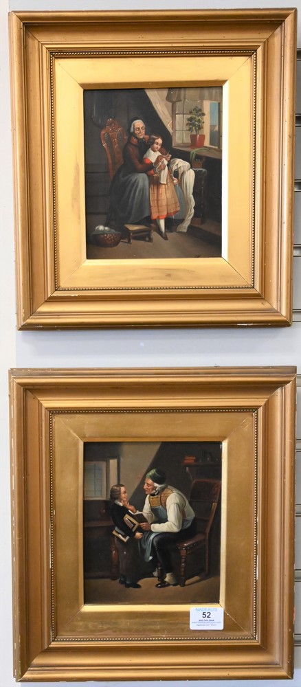 Two Piece Lot, to include Continental School (20th Century), Interior Scenes, oil on tin, both signed indistinctly lower right, in m…