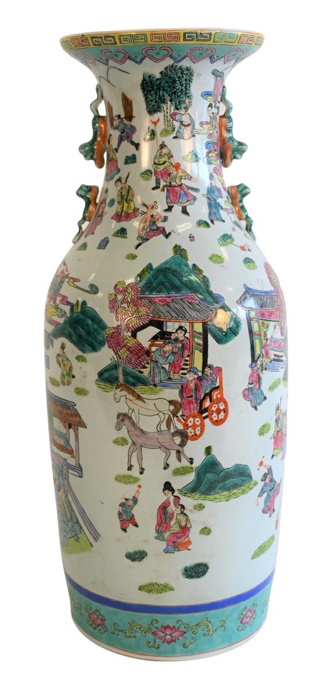 Large Chinese Porcelain Vase, having mounted tiger forms to the neck and figural scenes painted throughout the body, height 23 1/2 i…