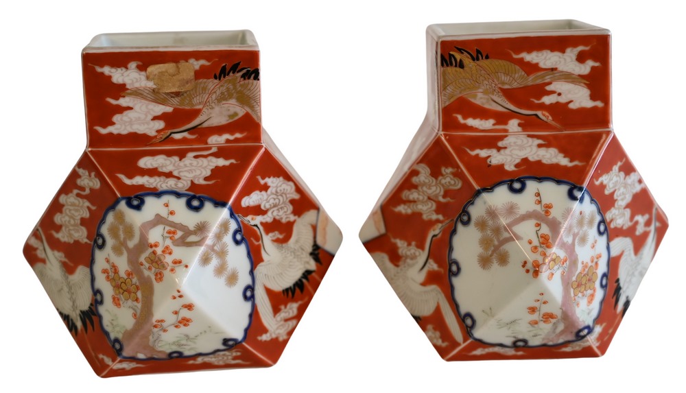 Pair of Japanese Angular Porcelain Vessels, height 5 3/4 inches.