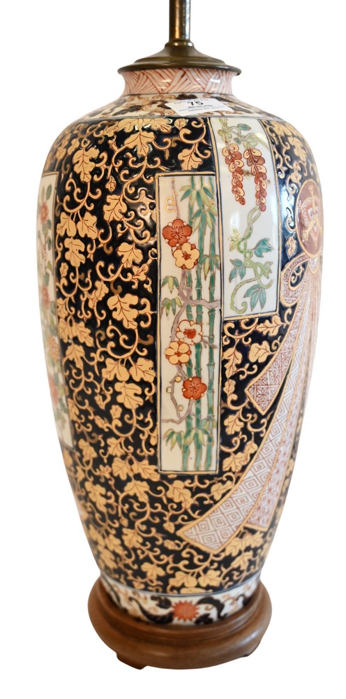 Chinese Porcelain Lamp, along with shade, vase height 16 inches, total height 34 inches.