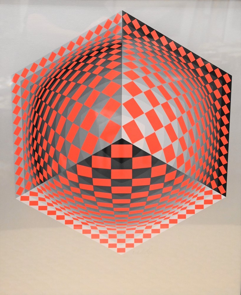 Victor Vasarely (French, 1906 – 1997), serigraph in colors on paper, “Mertan”, pencil signed and numbered 19/250 in the lower right,…