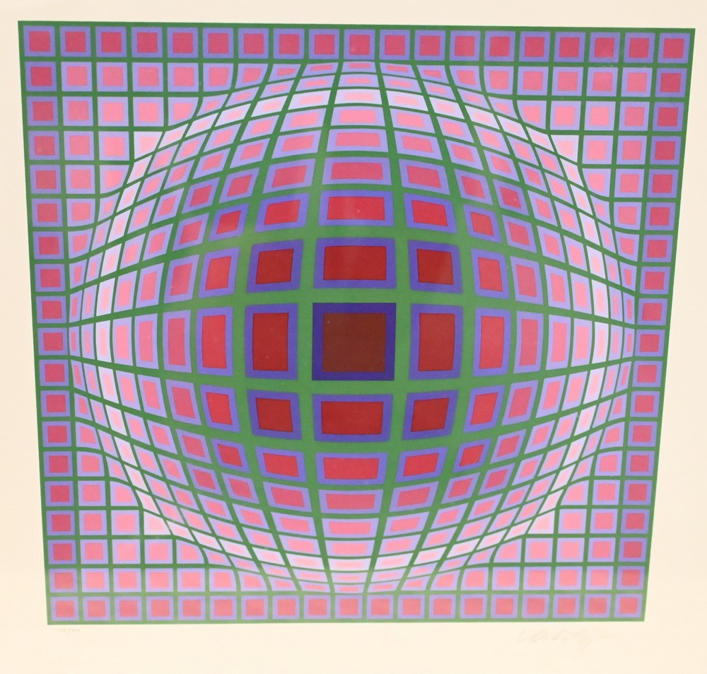 Victor Vasarely (Hungarian, 1906 – 1997), Vonal-Lap, 1985, serigraph in colors on Arches, signed and numbered “41/250” in pencil in …