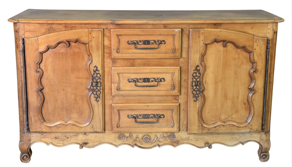 Louis XV Fruitwood Style Sideboard, having doors and drawers, height 43 inches, width 75 inches, depth 23 1/2 inches. Provenance: Wa…