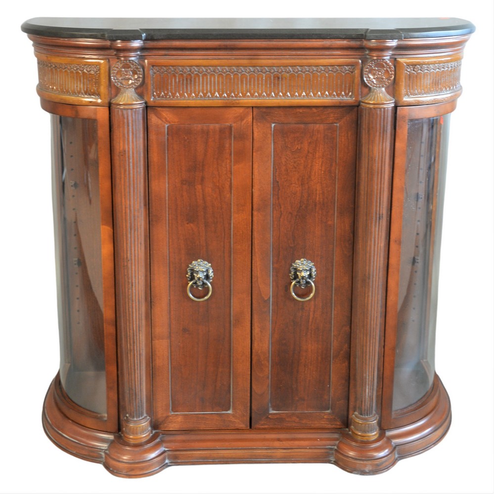 Empire Style Demilune Server, having granite top over four doors, height 36 inches, top 13″ x 36″.