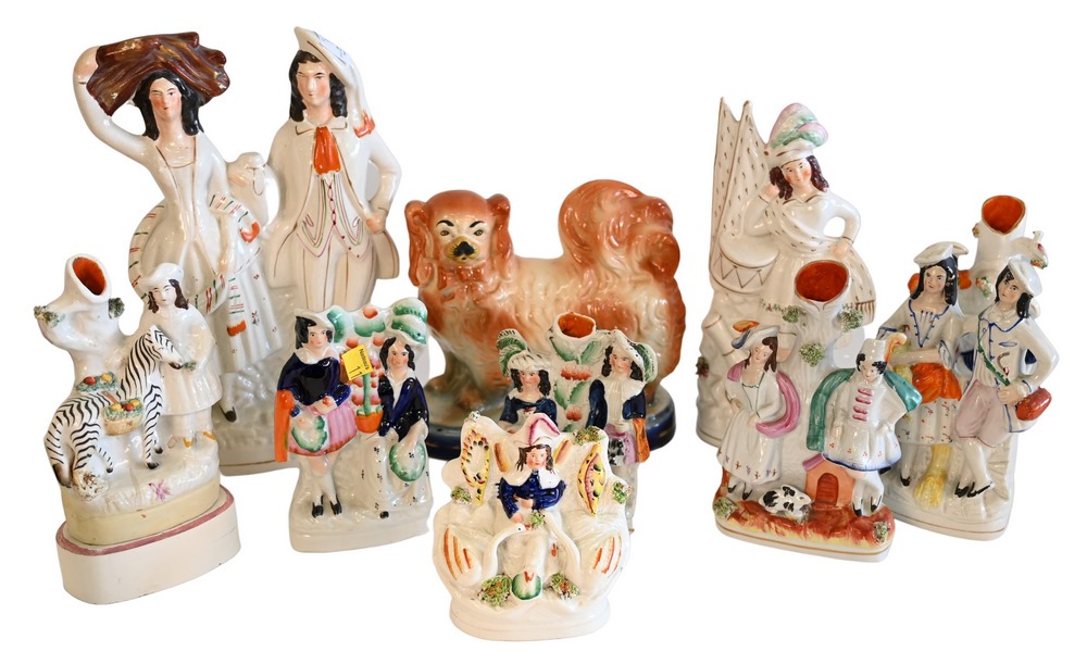 Ten Piece Figural Staffordshire Group, tallest 12 1/2 inches.