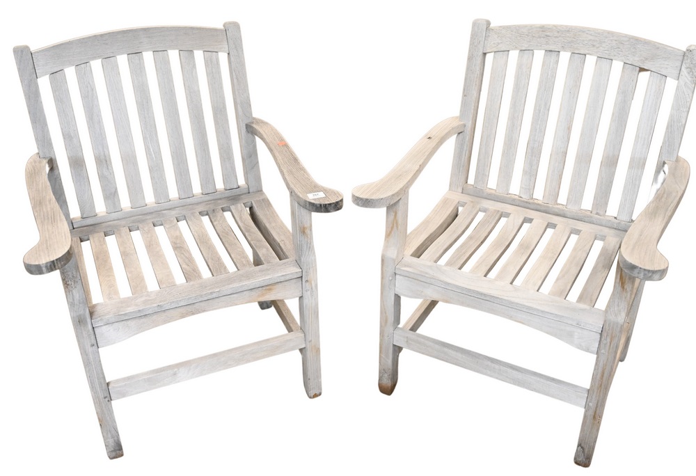 Pair of Teak Armchairs, by Outdoor Design, seat height 17 inches.