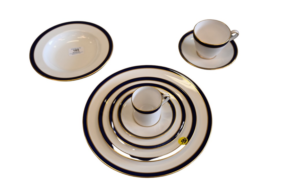 Approximately 104 Piece Spode Bone China Dinnerware Set, consul cobalt with gilt rims, to include 12 dinner plates, 12 salad plates,…