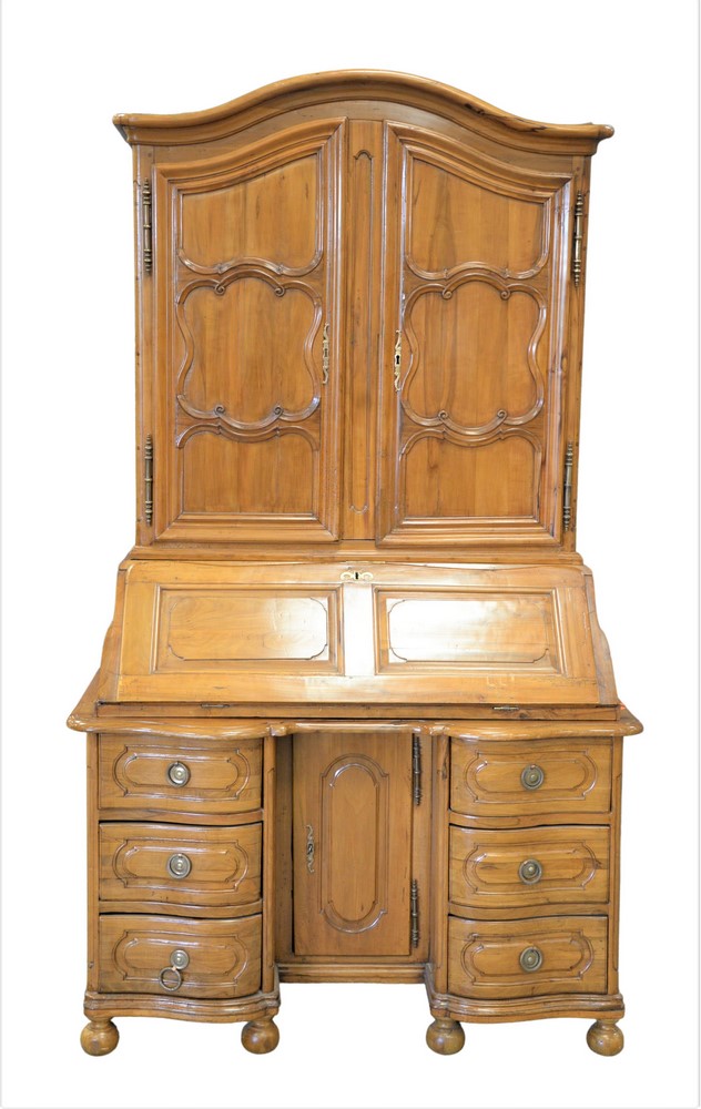 Continental Desk in Three Parts, having carved raised panels set on ball feet, height 88 inches, width 50 inches, depth 24 inches.