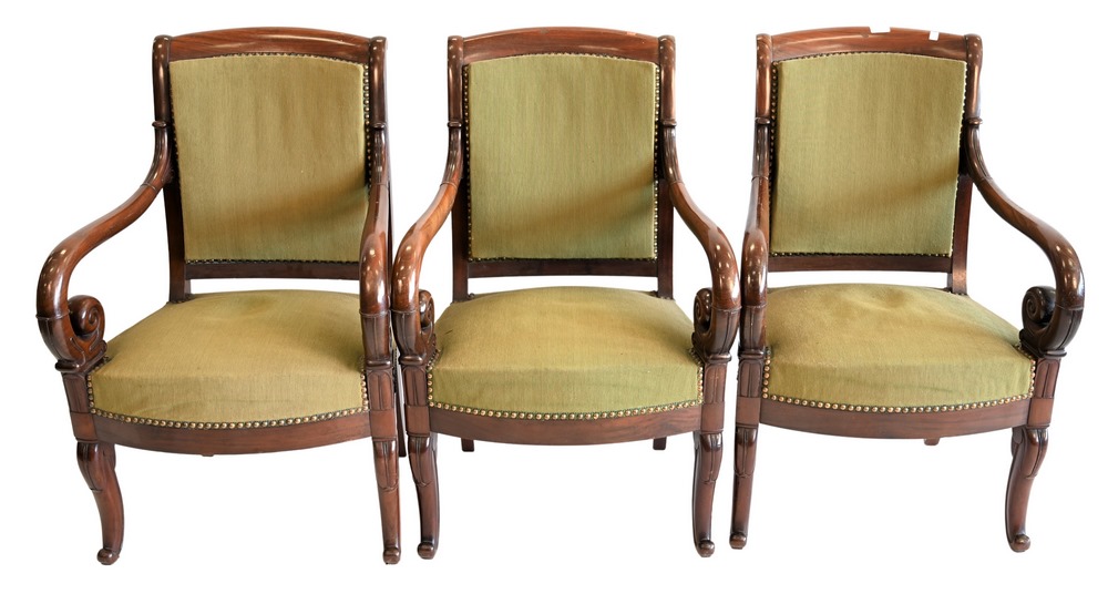 Set of Three Directoire Style Armchairs, 19th century, height 36 inches, width 22 inches.