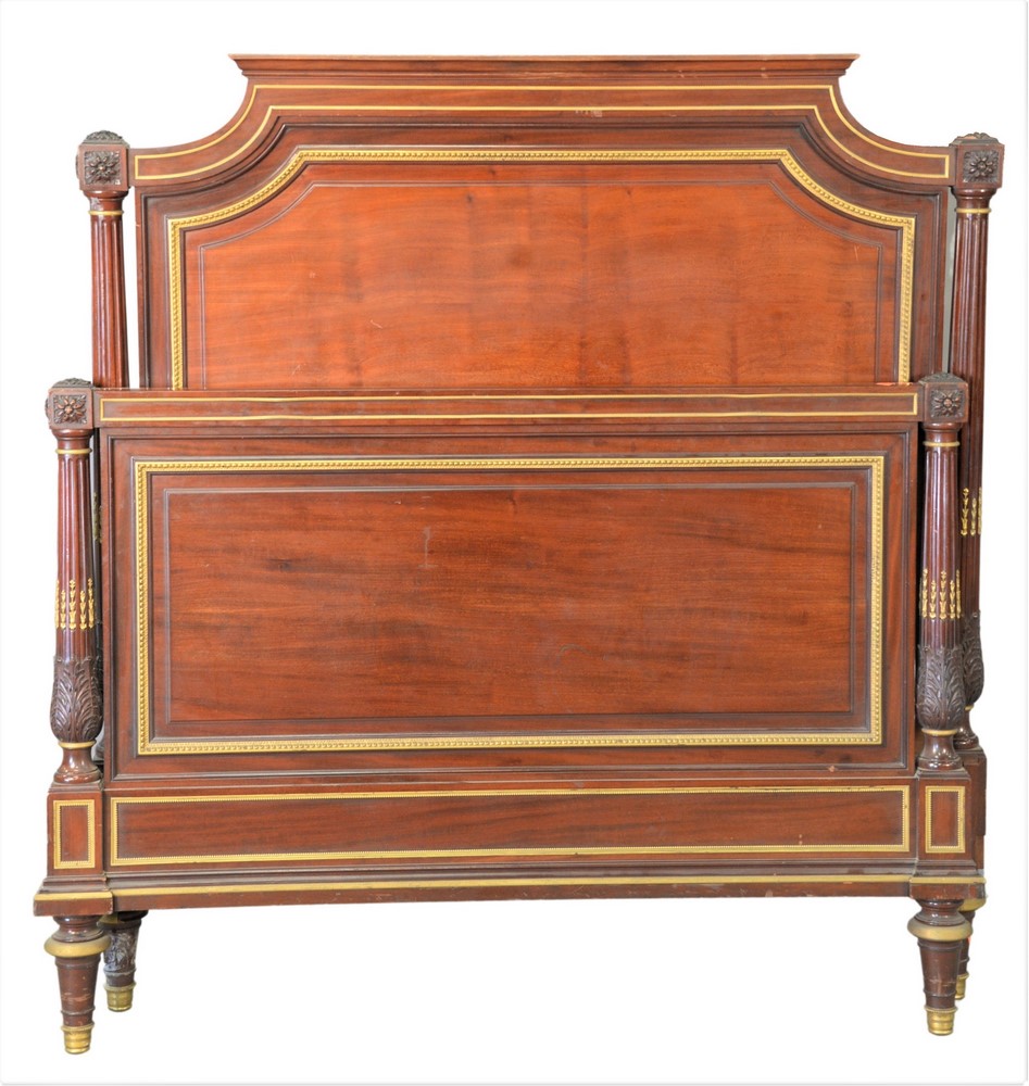 H. Fourdinois Louis XV Style Mahogany Bed, with gilt bronze mounts, twin size, signed H. Fourdinois, European size, height 47 1/2 in…