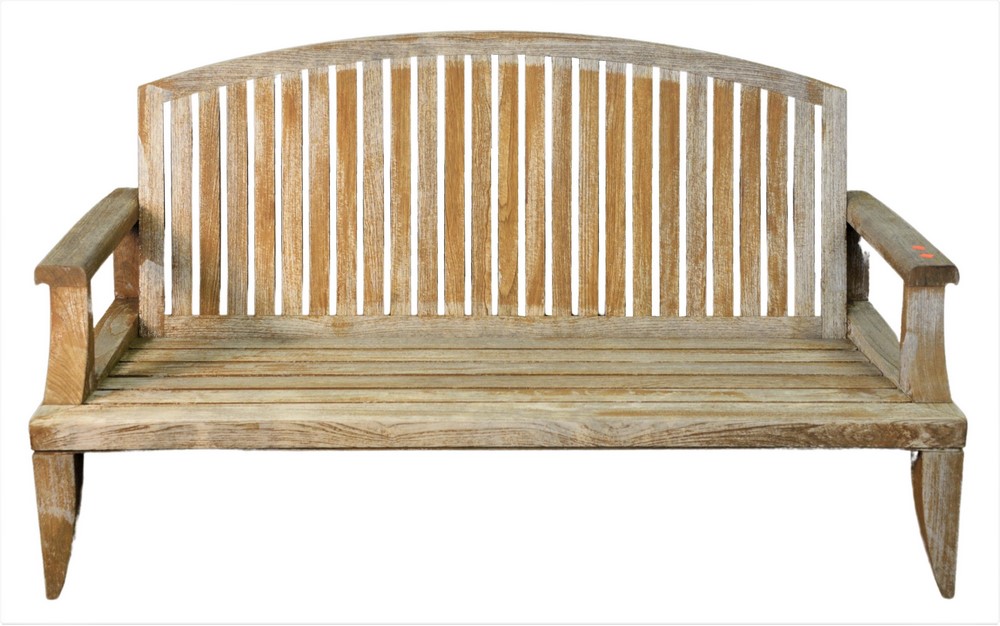 Large Teak Outdoor Patio Bench, having curved back, length 77 inches.