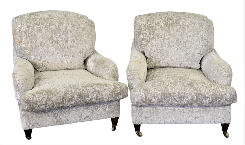 Pair of Custom Upholstered Easy Chairs, height 29 inches, width 30 inches.