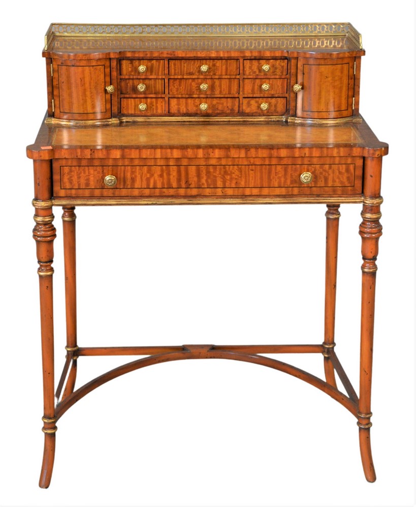 Maitland Smith Louis XVI Style Ladies Desk, having brass gallery and leather writing surface, height 36 1/2 inches, width 28 inches,…