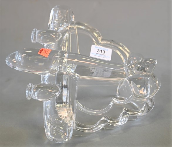 Daum Crystal Art Glass Airplane, H-OJ marked on the wing, height 7 1/2 inches, length 10 inches.