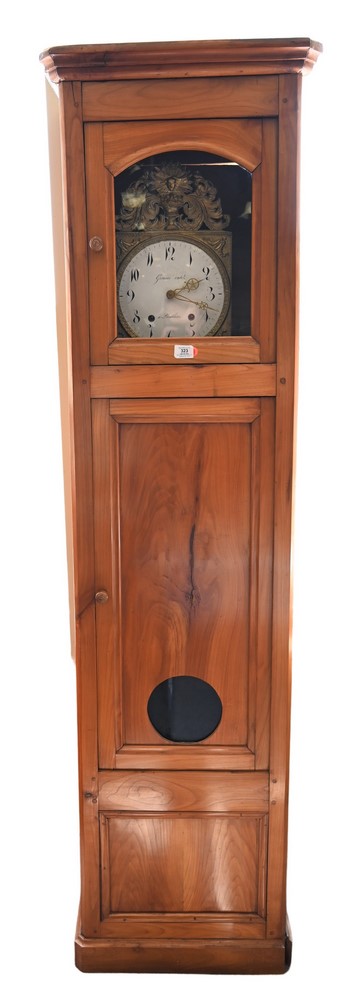 French Fruitwood Tall Clock, Grenier Cadet works, height 83 1/2 inches.