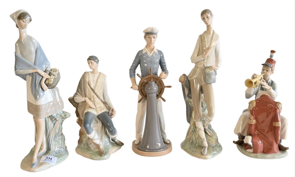 Five Piece Lot of Porcelain Lladro Figures, to include “Norman Rockwell Practice Makes Perfect”; “Pastor Nuevo”; “La Merienda”; “Del…
