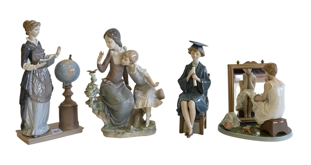 Four piece lot of Lladro porcelain figures, to include “Graduda”, “Hermanitas contemplativas”, “Rockwell’s Day Dreamer”, and “Maestr…