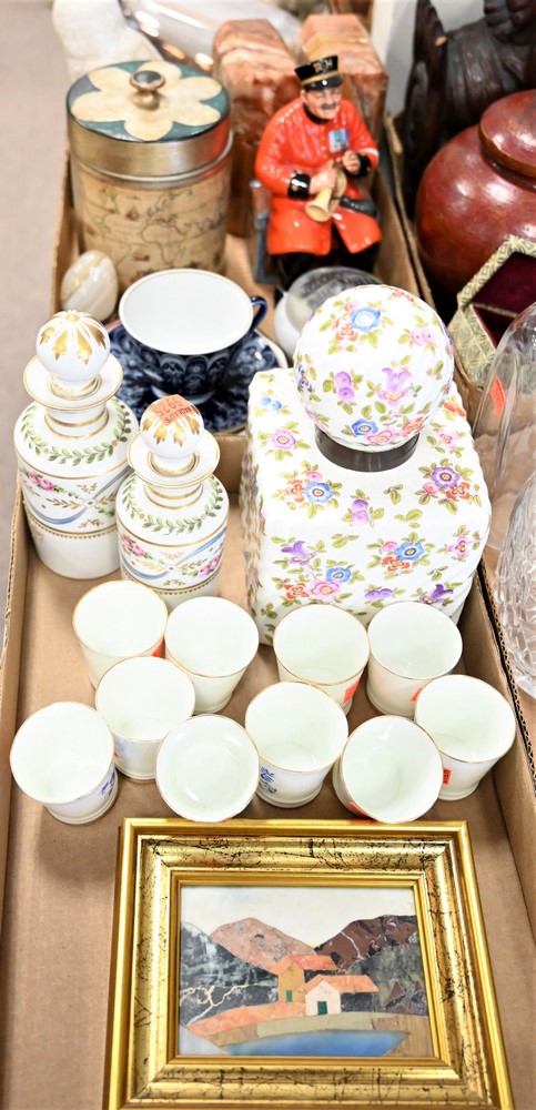 Three Tray Lots of Enameled Items, to include Joanne Conant enameled covered boxes, perfume bottle with brass enameled top, mother o…