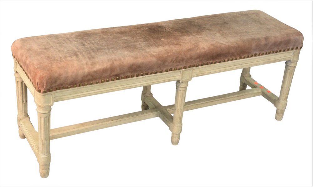Louis XVI Style Bench, having upholstered top, height 18 inches, length 49 inches.