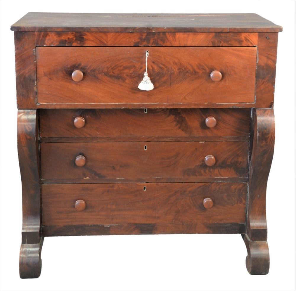 Empire Mahogany Chest, circa 1840, height 45 inches, width 46 inches.