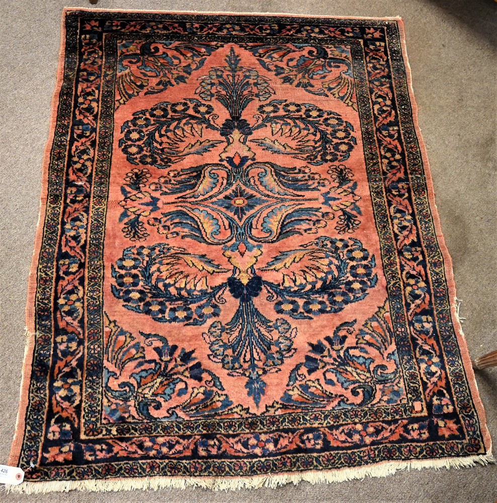 Hamadan Oriental Throw Rug, 3′ 7″ x 4′ 5″. Provenance: Waterfront Estate, Stamford, CT.