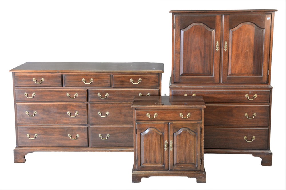 Henkel Harris Mahogany Three Piece Set, to include tall chest, double chest, along with a night table, finish is commensurate with a…