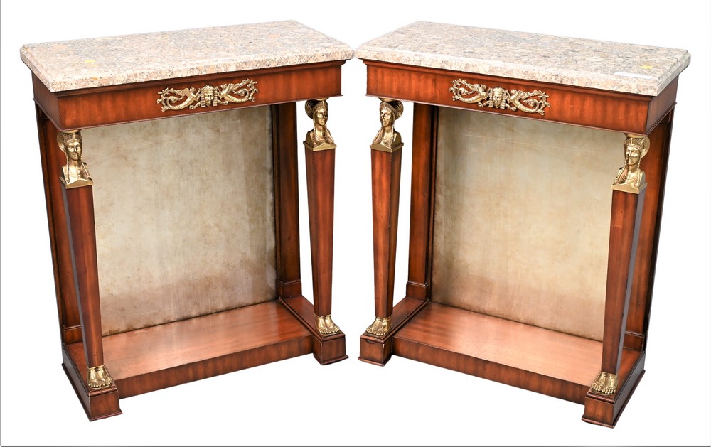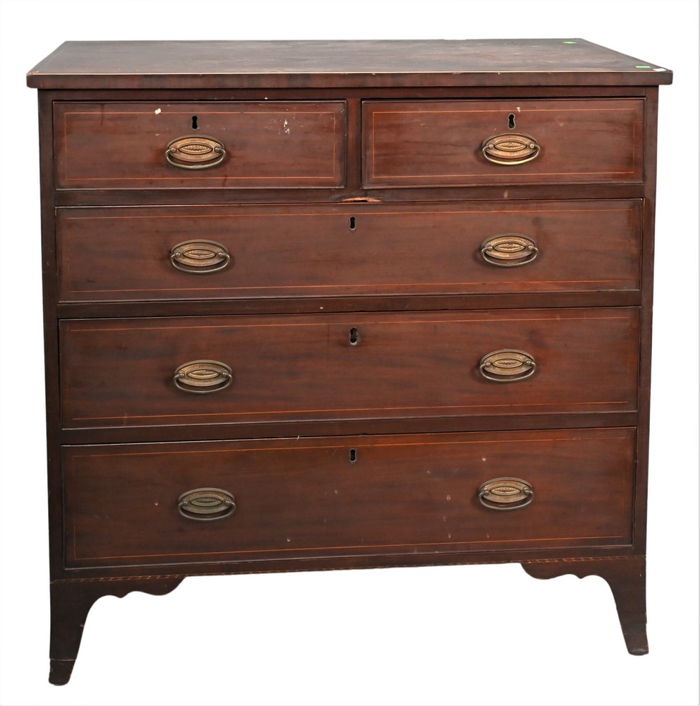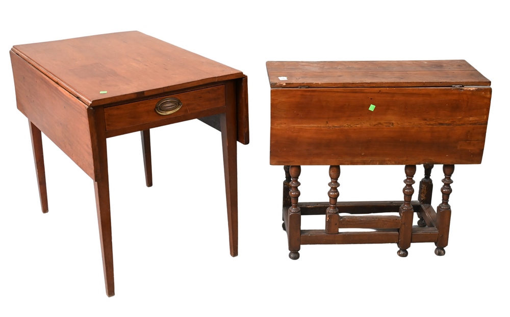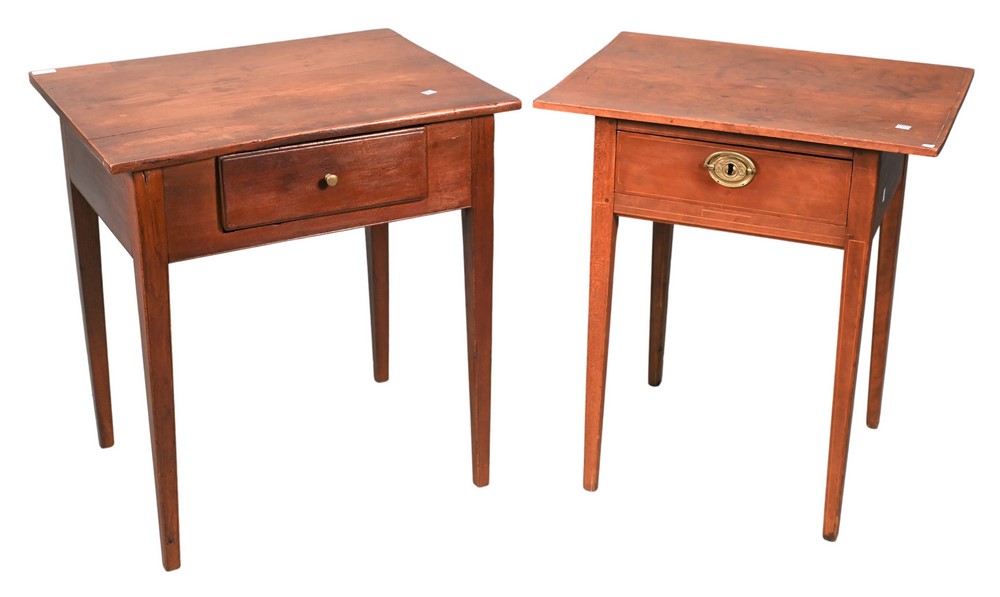 Two Mahogany Federal One Drawer Stands, one having cherry legs with line inlays, heights 26 1/2 inches and 26 1/2 inches, top 17 1/2″ x 23 3/4″, and 19 1/4″ x 24 1/2″.