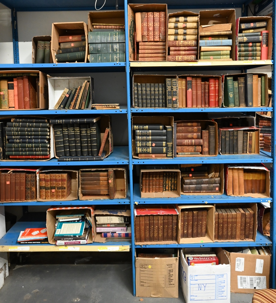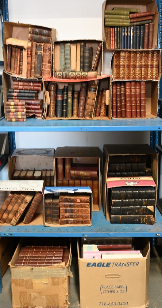 Large Group of Books, Engravings, and Etchings, to include Atlas of the Borough of Brooklyn, volume two by E. Belcher Hyde 1917; three volume set of The National Shakespeare; leather bound Holy Bible; book of the Tile CLVB; Boston Almanac 1842; along with engravings, etchings and prints.