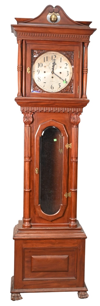 Round Victorian Mahogany Dining Table, on eight column base set on carved platform, large paw feet, top with rope edge, has center support legs when extended, no leaves, height 30 inches, diameter 60 inches.