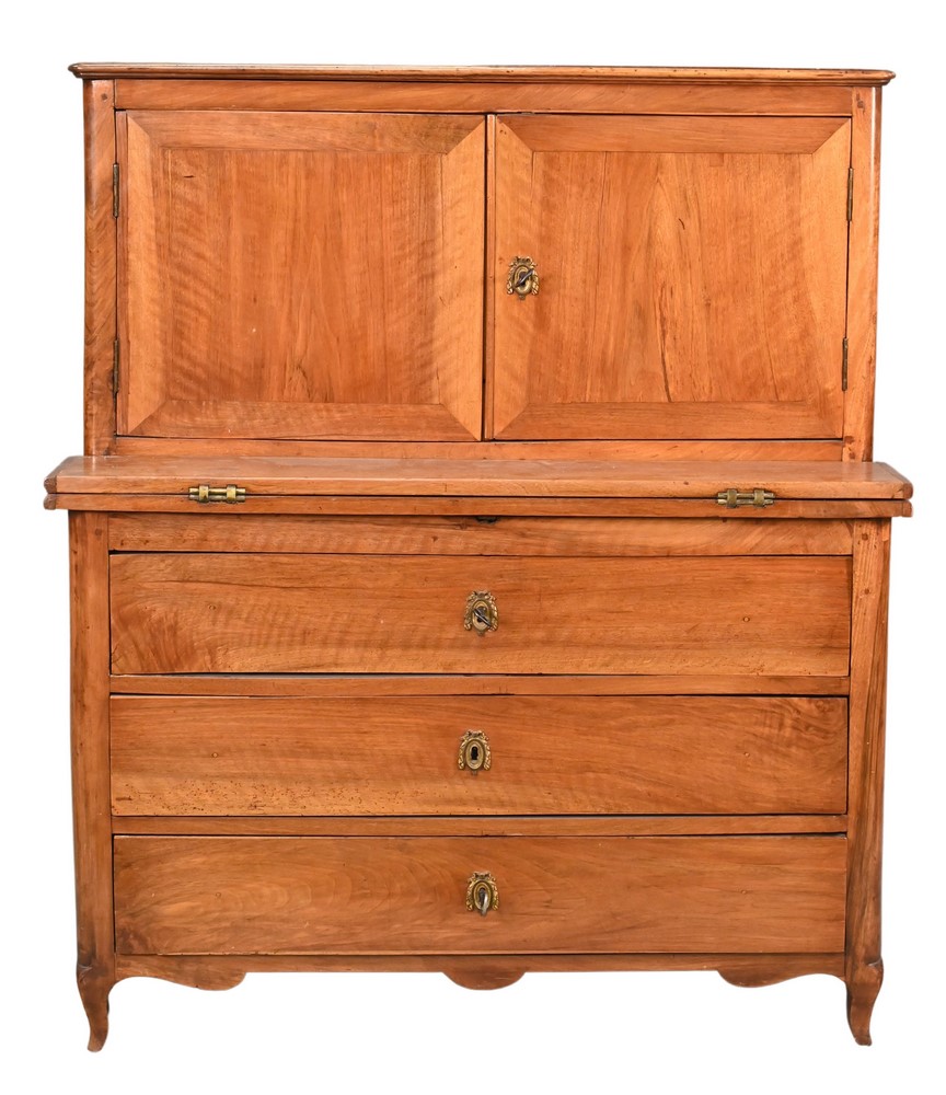 Louis XV Desk, having two doors with drawered interior, flip writing surface over three drawers, probably walnut, 18th century, height 50 inches, width 42 inches, depth 18 inches.