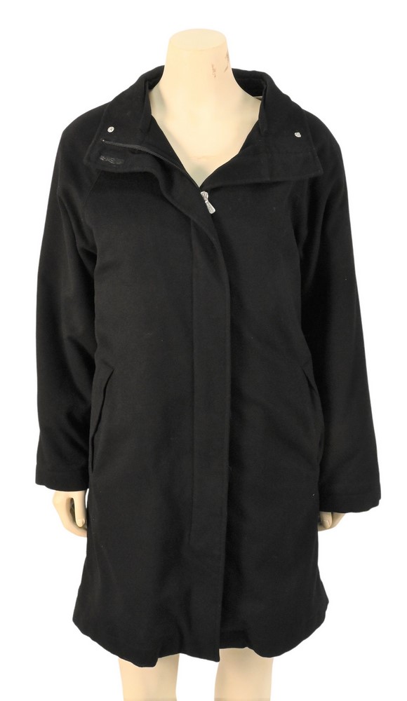 Loro Piana Black “Icer” Cashmere Zip Front Coat, having zip out lining, stand up collar, front slip pockets, size M/L, in excellent condition, minimal wear.