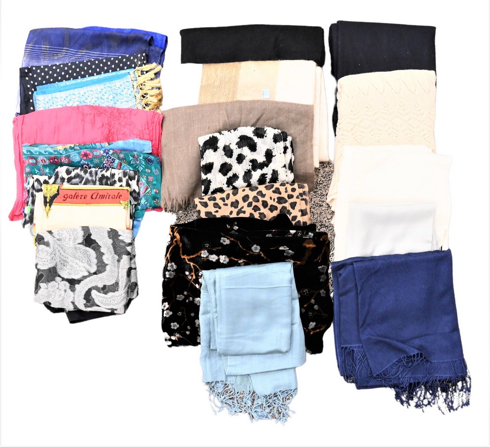 Designer Sweaters, Shawls and Vests, to include two shawls, seven vests, eight sweaters, mostly cashmere and cashmere blend, sizes medium to large, in good pre-owned condition, no pulls.