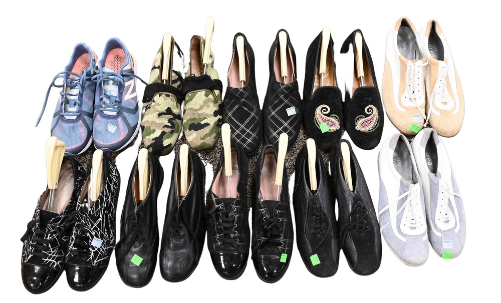 Ten Pairs of Designer Shoes and Boots, to include black suede by Bottega Veneta; Blue Tod’s driving loafers; Gucci horsebit loafers; Louboutin espadrilles; Florentina pumps; etc., size 8 1/2, condition consistent with normal wear, some scratches, boots hardly worn.