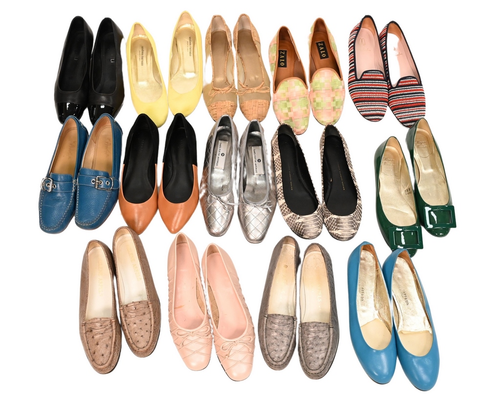 Large Lot of Designer Shoes, to include Donald Pliner, Tanino Crisci, Vera Wang, Enrico Antinori, Rene Mancini, along with others, sizes 8 – 8 1/2, condition consistent with normal wear.