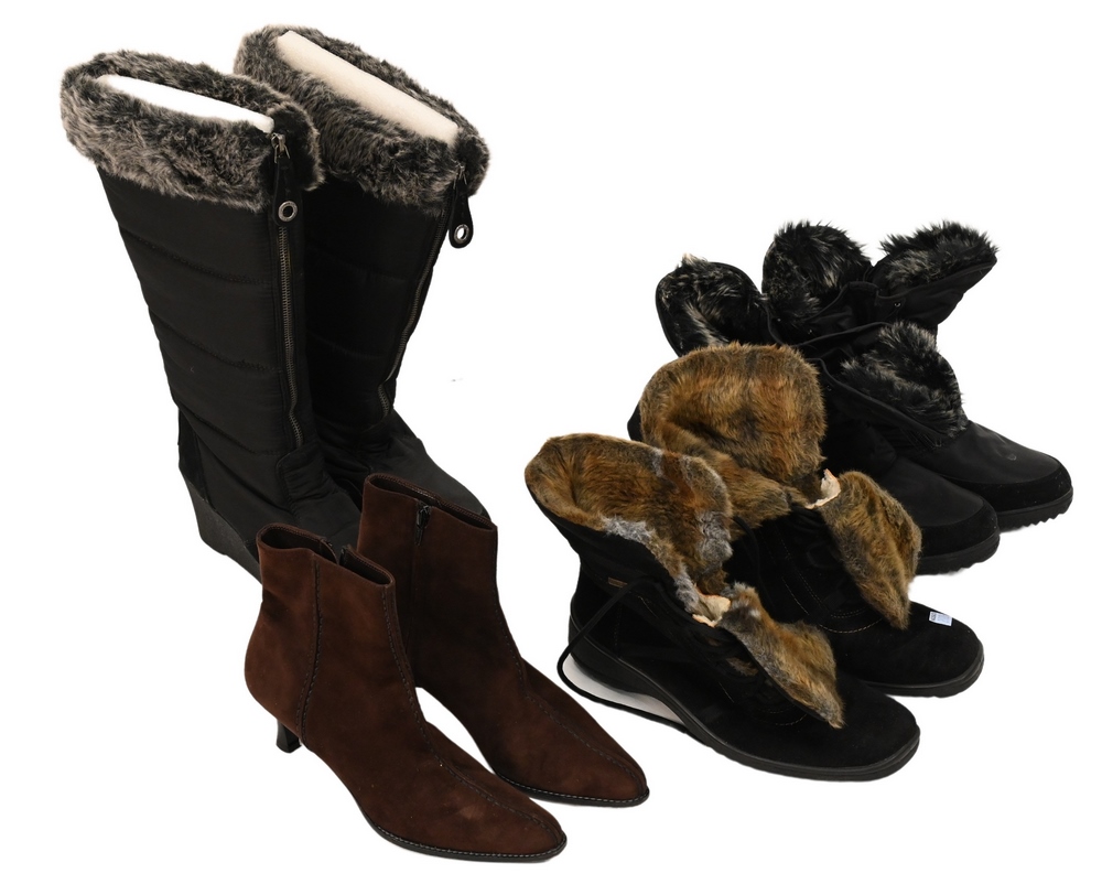 Four Pairs of Winter Boots, to include tall nylon wedge boots by Juicy Couture, gore tex by ARA, black nylon by Alpi-Tex and suede ankle boots, good condition with normal wear, size 8.