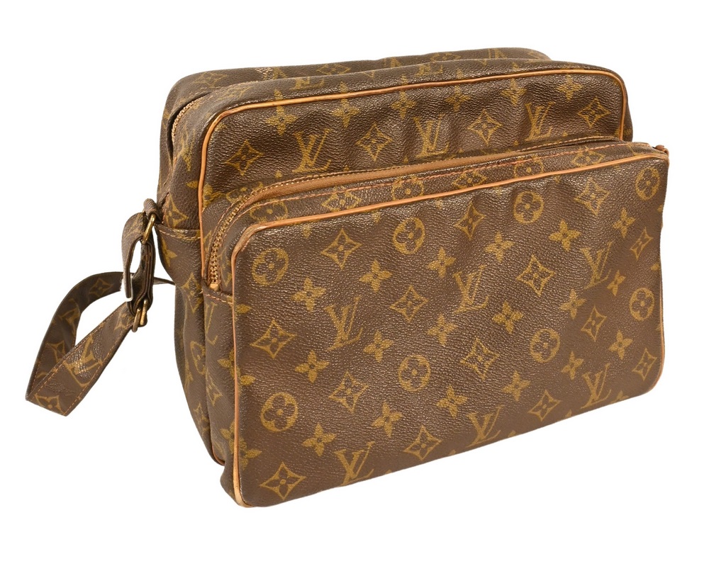 Vintage Louis Vuitton Canvas Logo Camera Shoulder Bag, 1970’s, having single interior compartment and exterior zip pocket, condition consistent with age, normal wear, height 9 inches, width 11 inches.