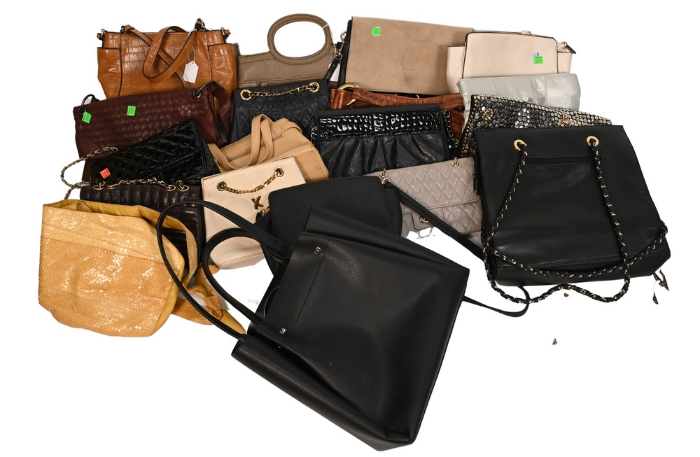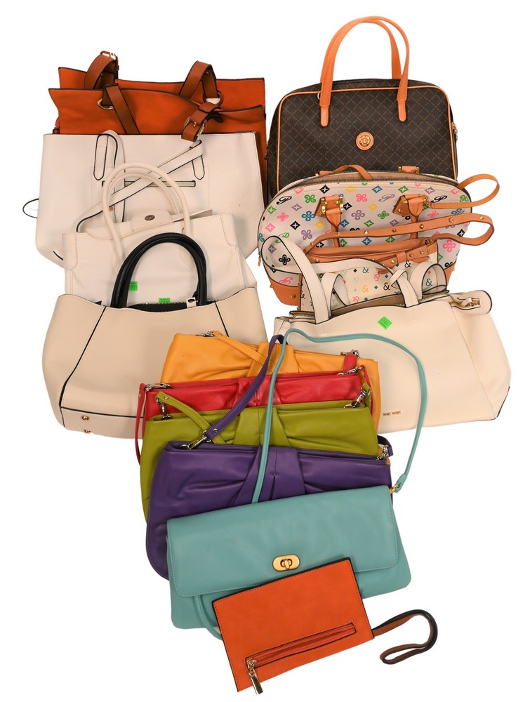 13 Piece Lot of Designer Handbags, to include La Tour Eiffel, Zara, Maxima, Nine West, ili Leathers and others, having scratches to leather, ili’s heavily used.