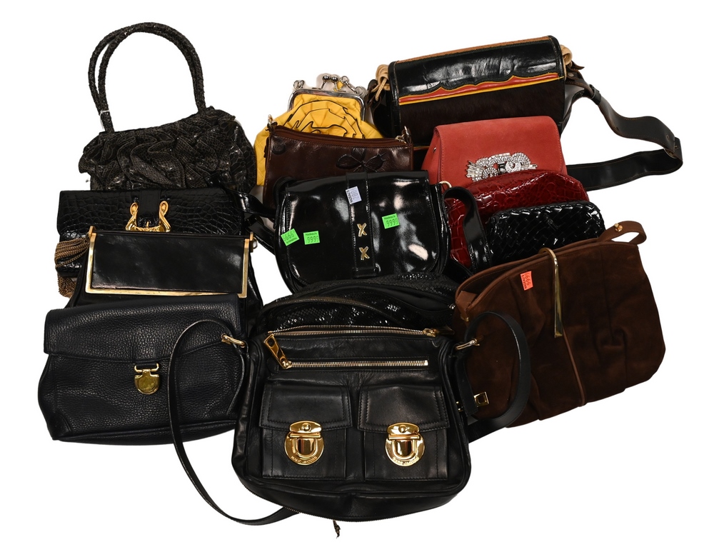 14 Piece Lot of Miscellaneous Handbags, to include Vintage, Marc Jacobs, Furla, Paloma Picasso and others, having some scratches, stained lining, and worn edges.