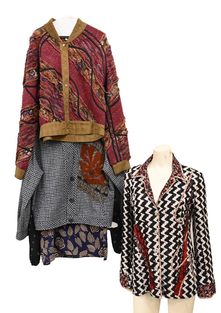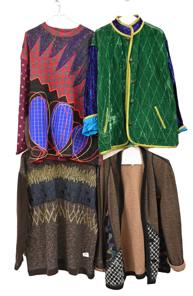 Group of Four Koos Van Den Akker Multicolor Sweaters and Jackets, size M/12. Provenance: Connecticut Personal Collection of American Antiques and Oriental Rugs.