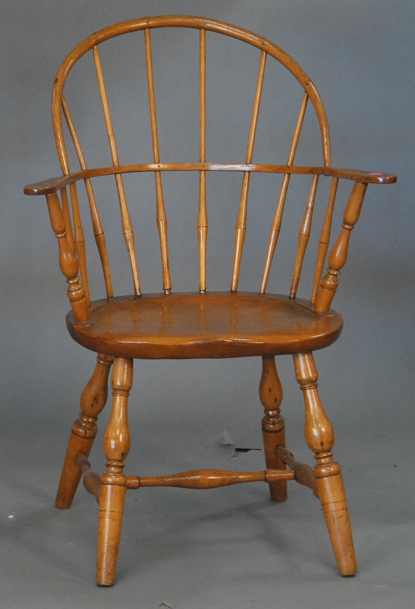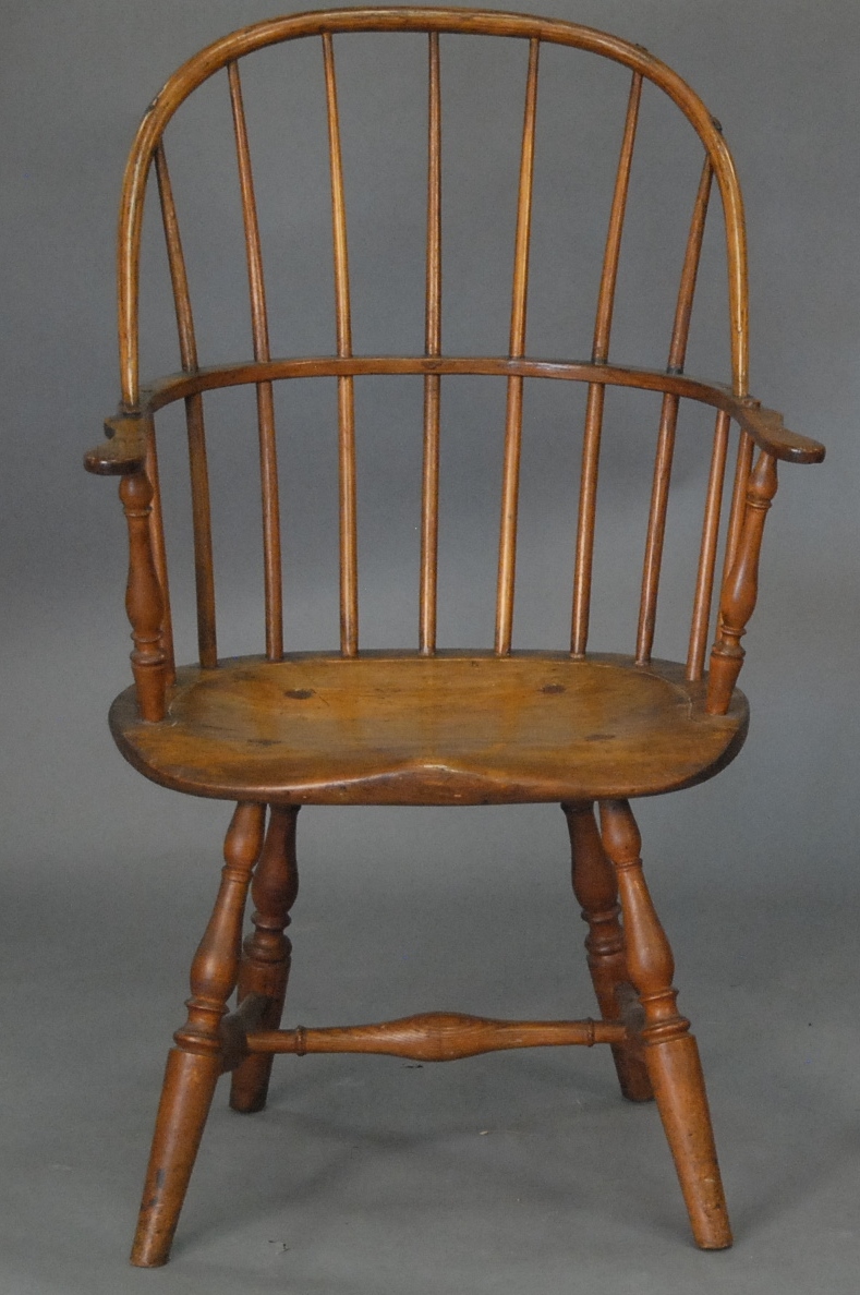 Windsor sack back armchair on bold turned legs, 18th century.seat ht. 16 in.