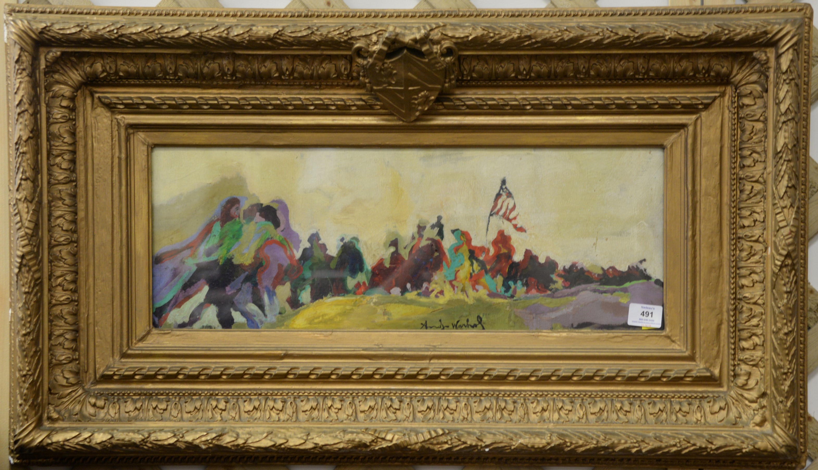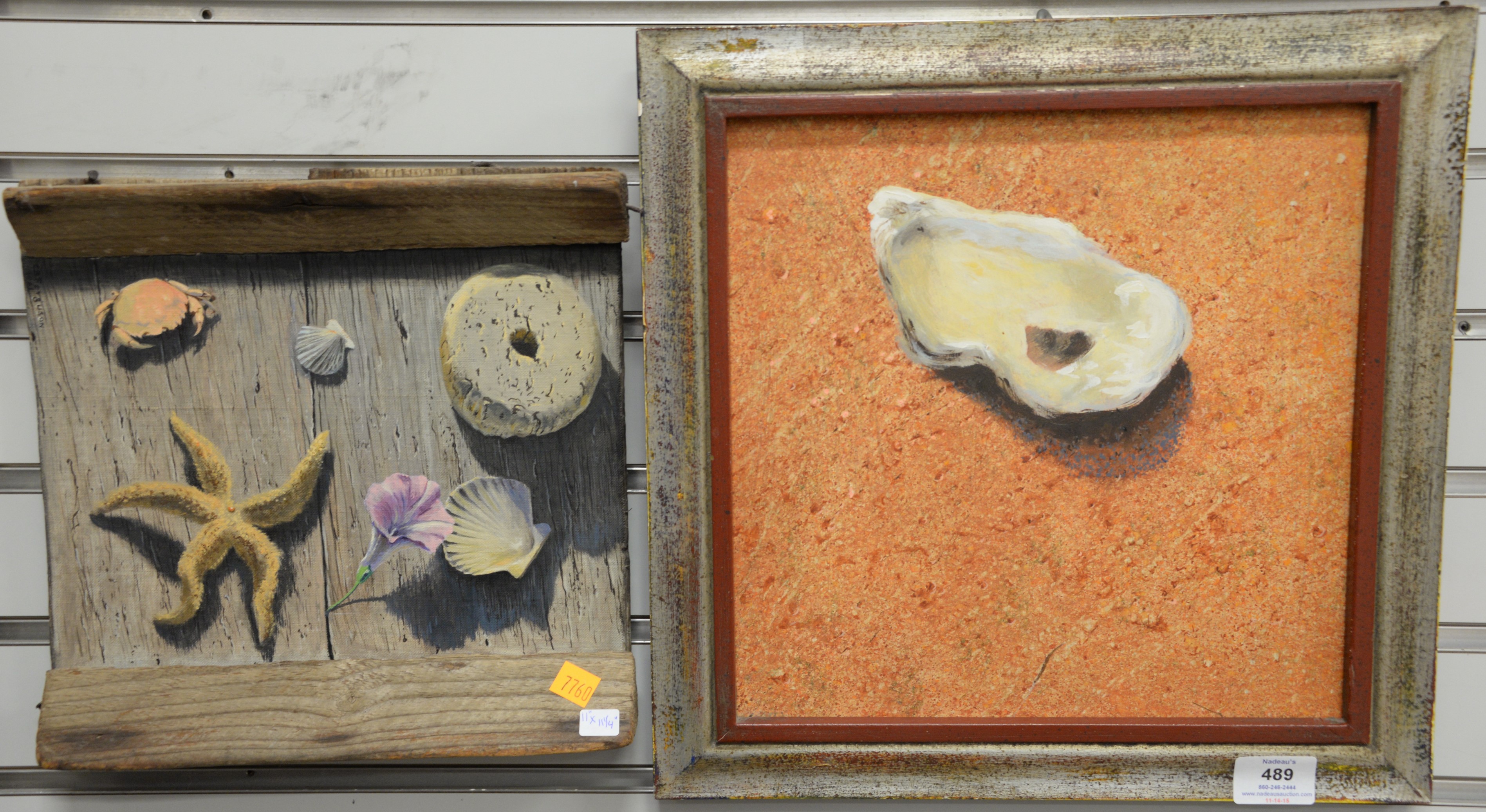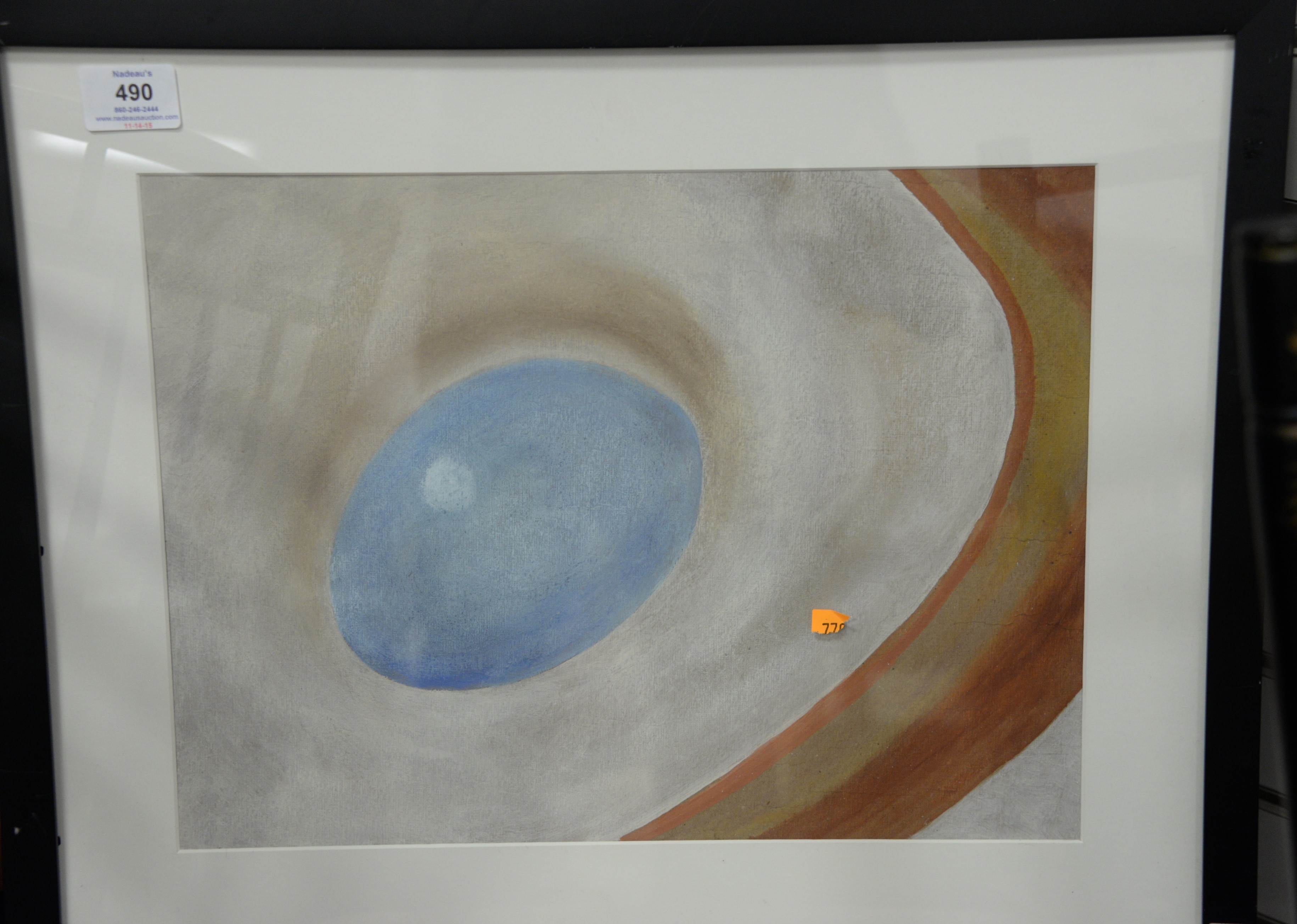 Two paintings in the style of Georgia O’Keefe 1887-1986 including a pastel and an oil, both are inscribed on reverse: I do not Georgia and Thank you, so sorry Georgia, 11 1/2 x 15 1/2 and 12 x 16.