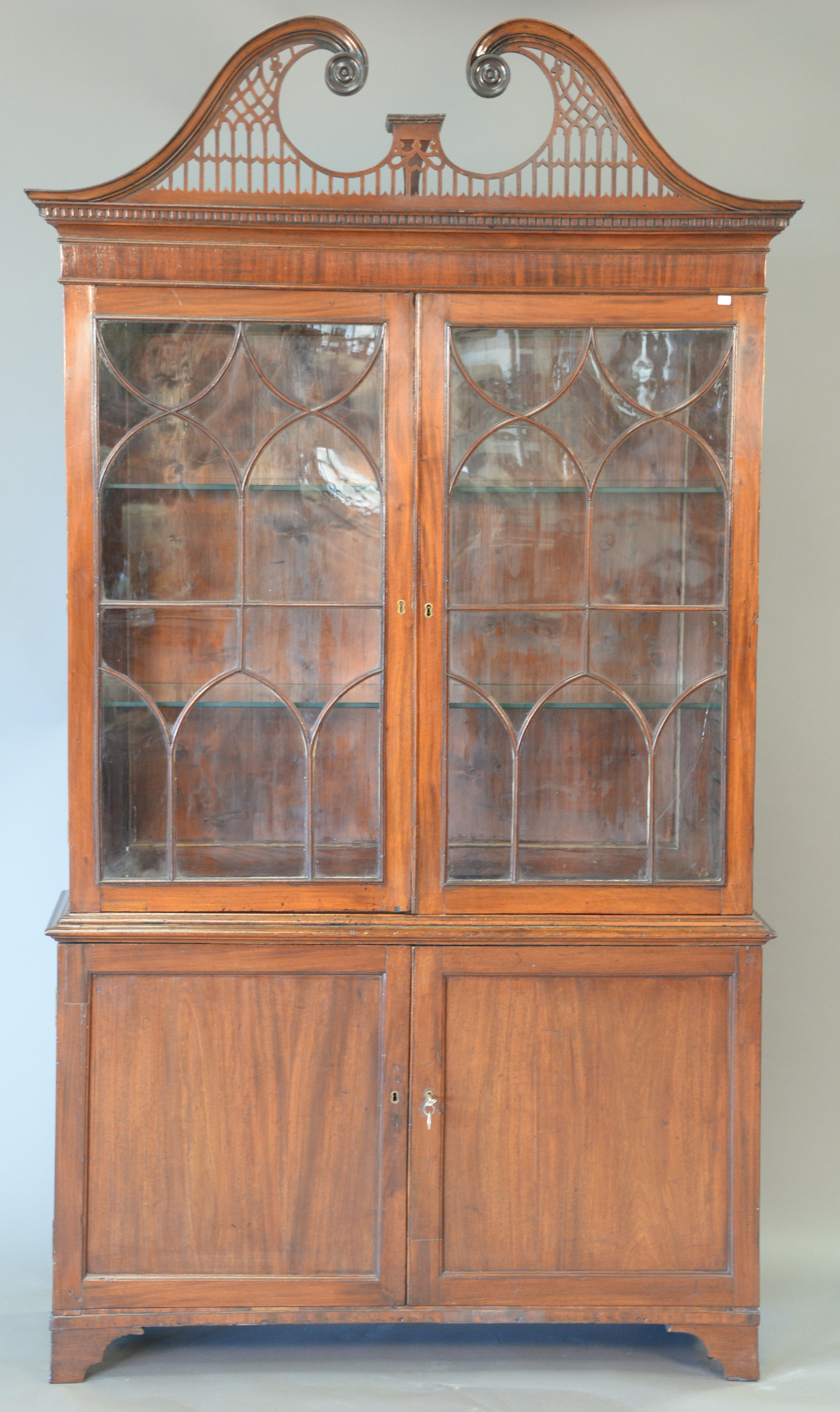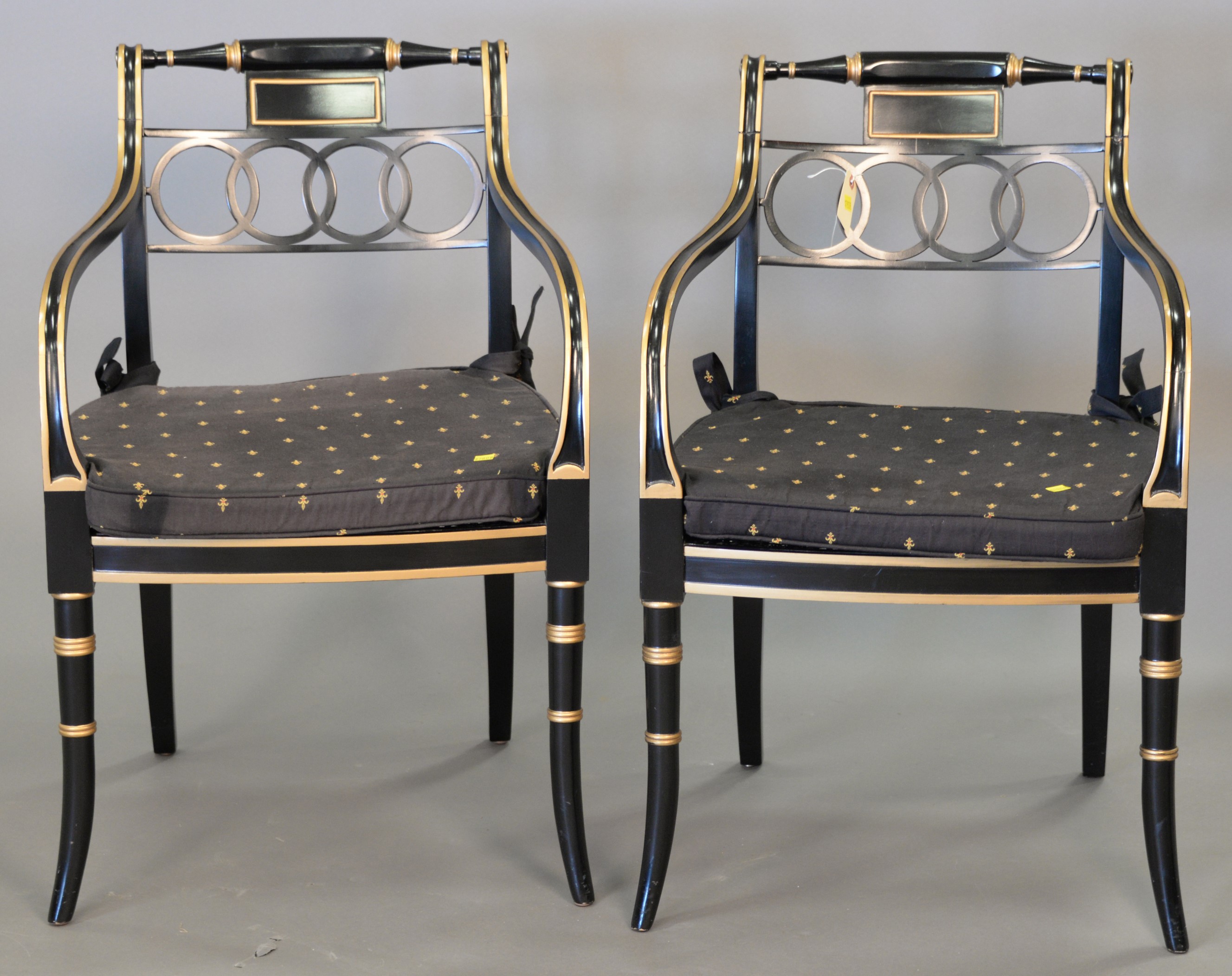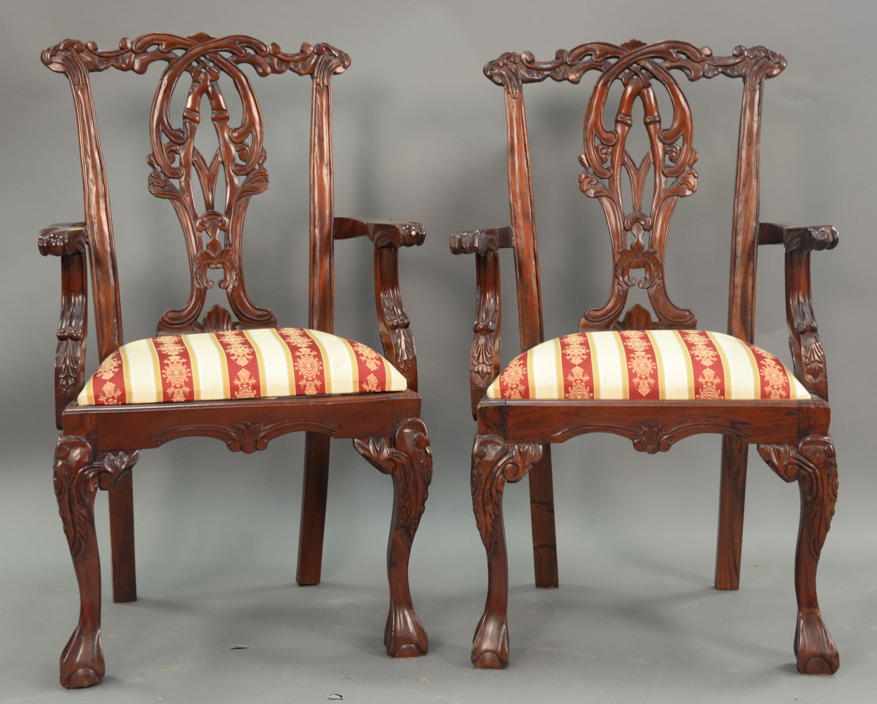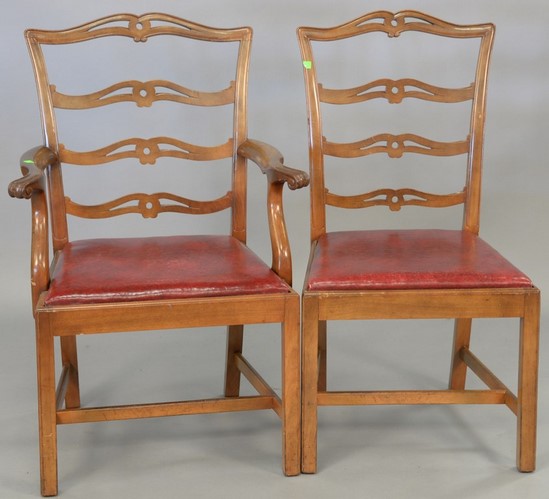 A. H. Davenport Set of eight Chippendale style dining chairs with ribbon backs, six side and two arm, marked A. H. Davenport Co., Boston New York, as is, sun faded.