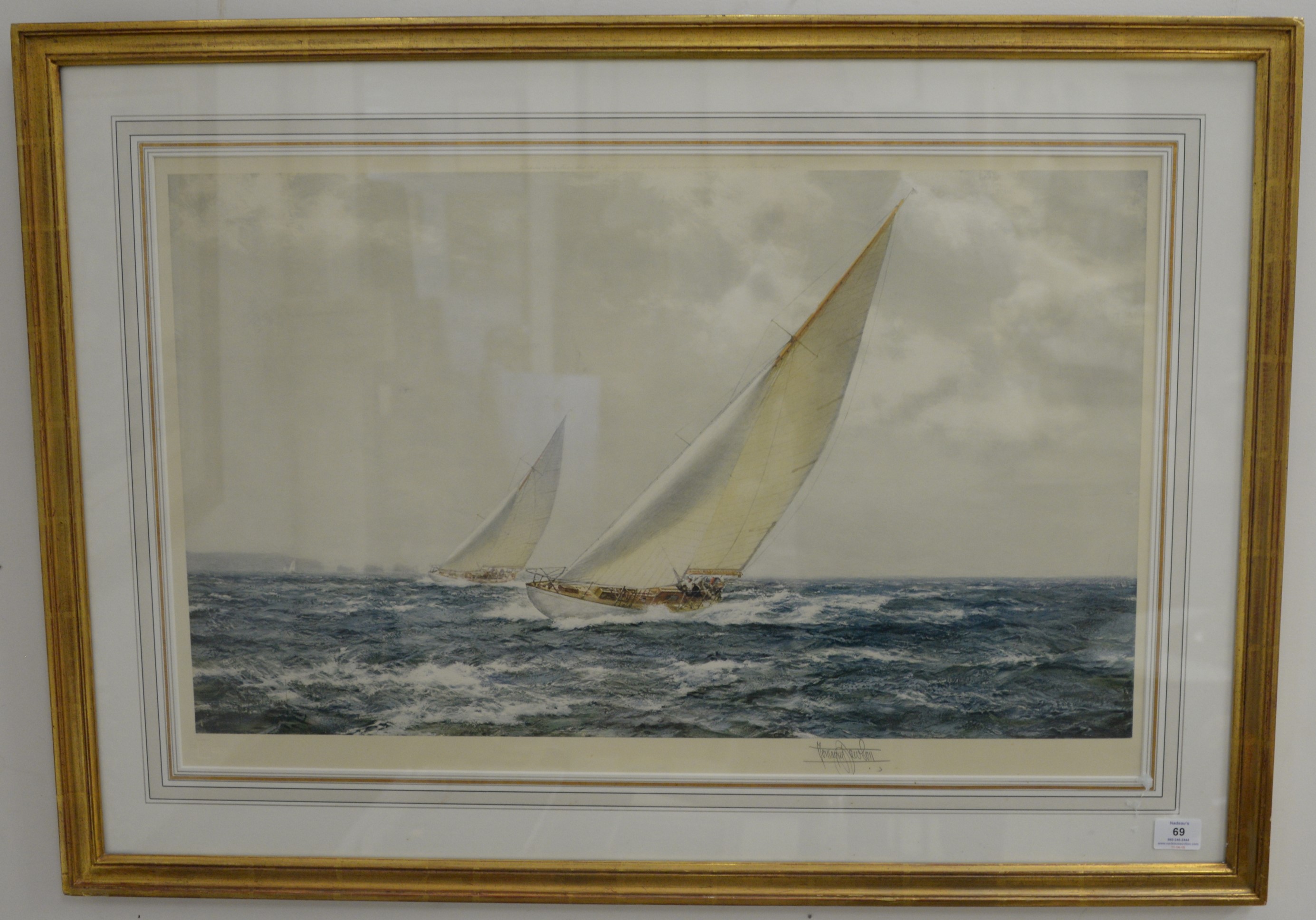 Two Montague J. Dawson colored chromolithographs including U.S.S. Constellation and one untitled, both pencil signed lower right Montague Dawson. sight sizes: 21 1/2 x 31 and 19 1/2 x 30 3/4 Property from Credit Suisse’s Americana Collection