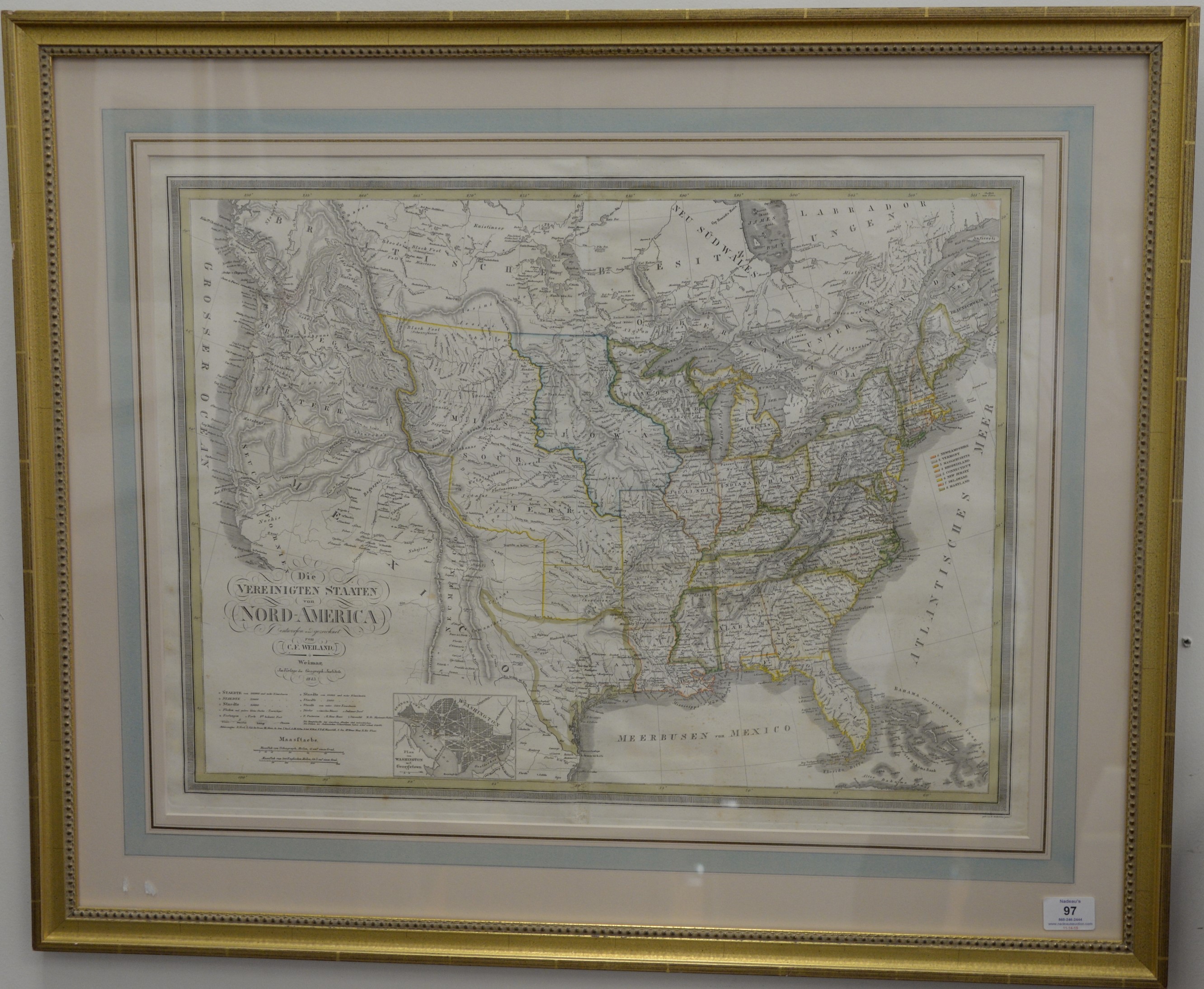 Colored lithograph, Die Vereinigten Staaten von Nord-America von C.F. Weiland Weimar 1843, plate size: 18 1/2 x 26. Property from Credit Suisse’s Americana Collection