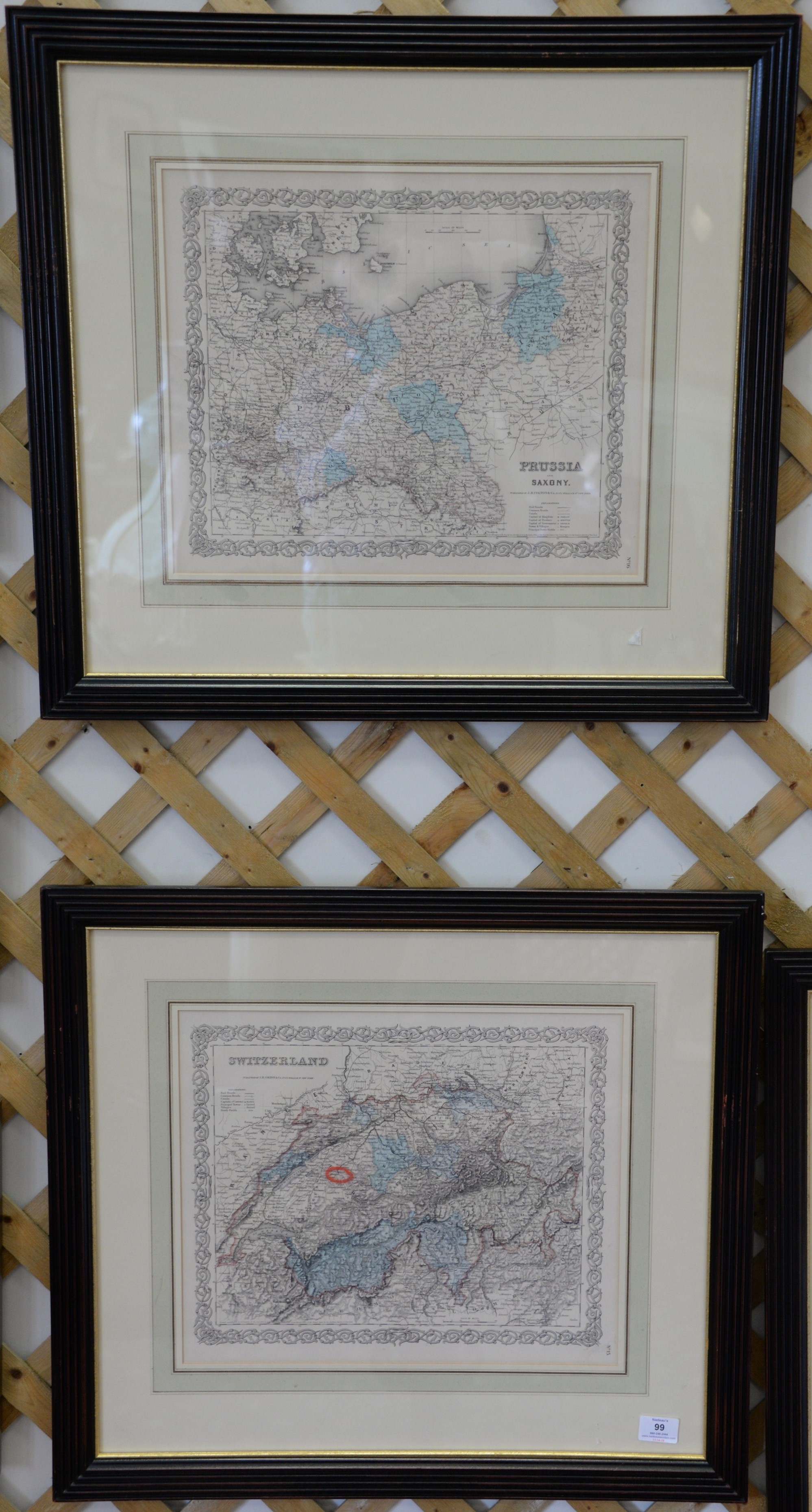 Three Joseph Hutchins Colton maps, hand colored engravings, Atlas of the World by George Woolworth Colton published in New York including map of Ireland 16 3/4 x 14 sight size, map of Switzerland 14 x 16 3/4 sight size, and map of Prussia 14 x 16 3/4 sight size, framed and matted by Wesley Adams Framemakers. Property from Credit Suisse’s Americana Collection