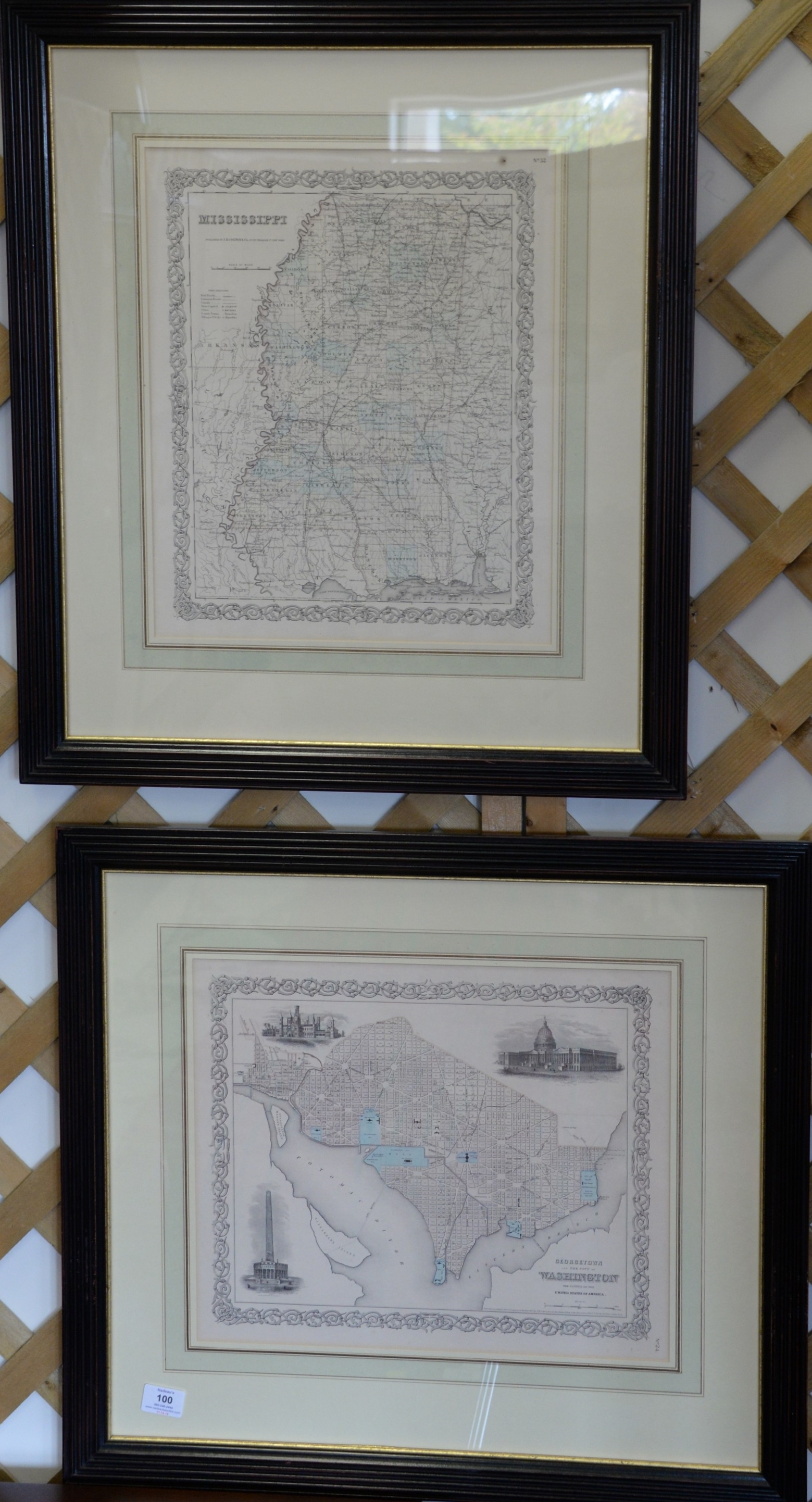 Three Joseph Hutchins Colton maps, hand colored engravings, from Colton’s Atlas of the World by George Woolworth Colton, Published in New York, all framed and matted by Wesley Adams Framemakers including Mississippi, Georgia, Georgetown and the City of Washington, sight sizes: 16 3/4 x 14, 14 x 17, & 16 3/4 x 14. Property from Credit Suisse’s Americana Collection