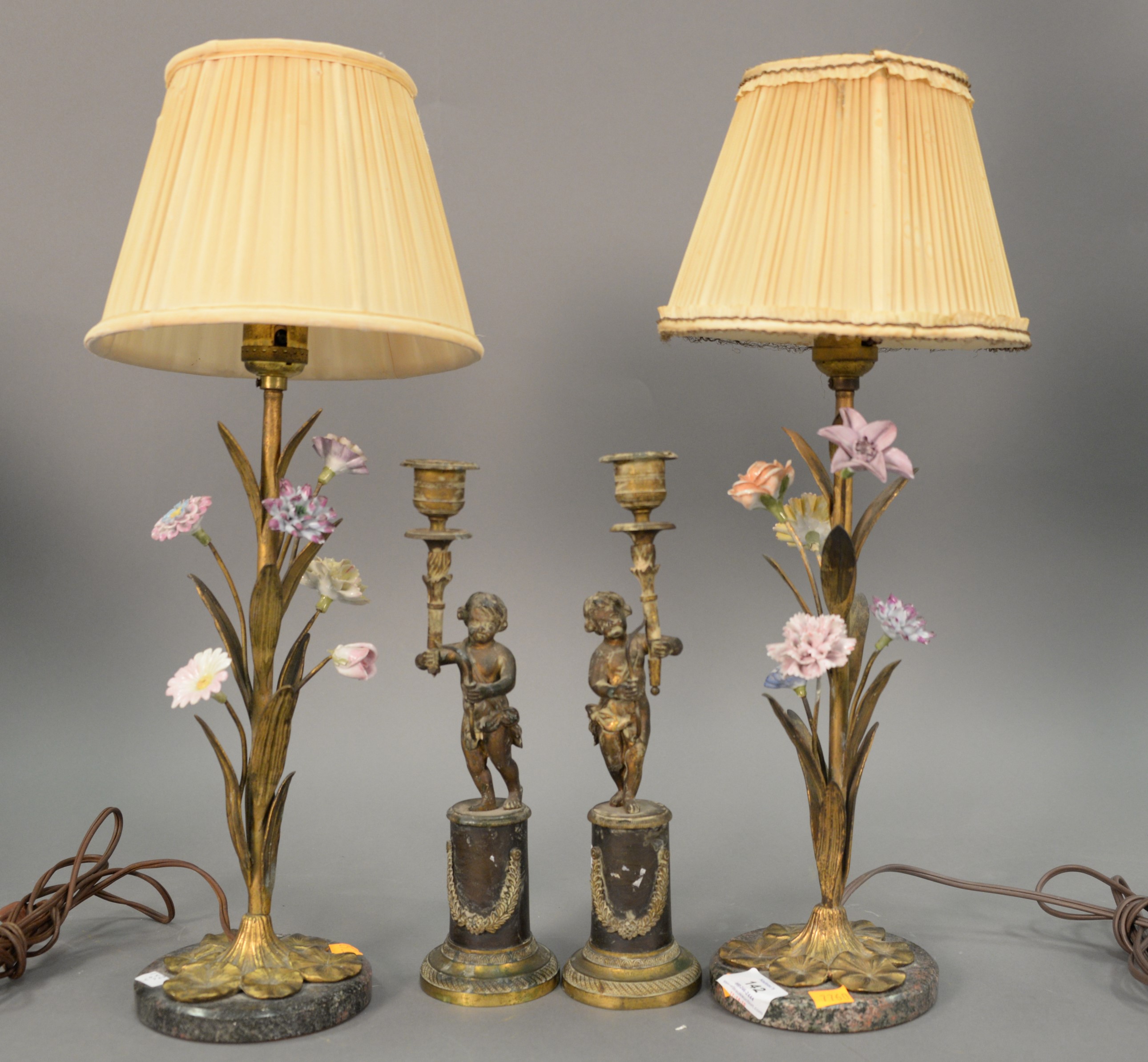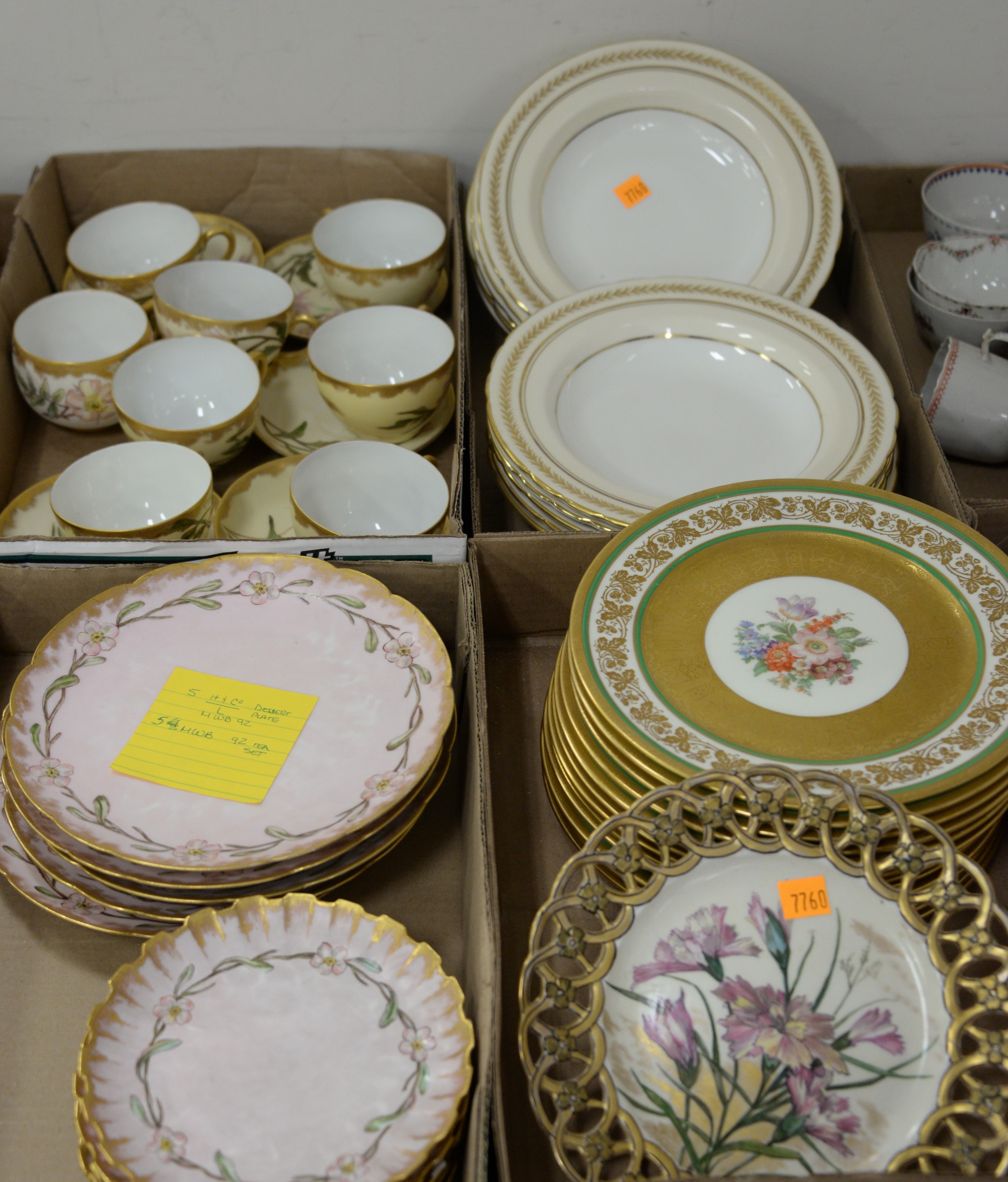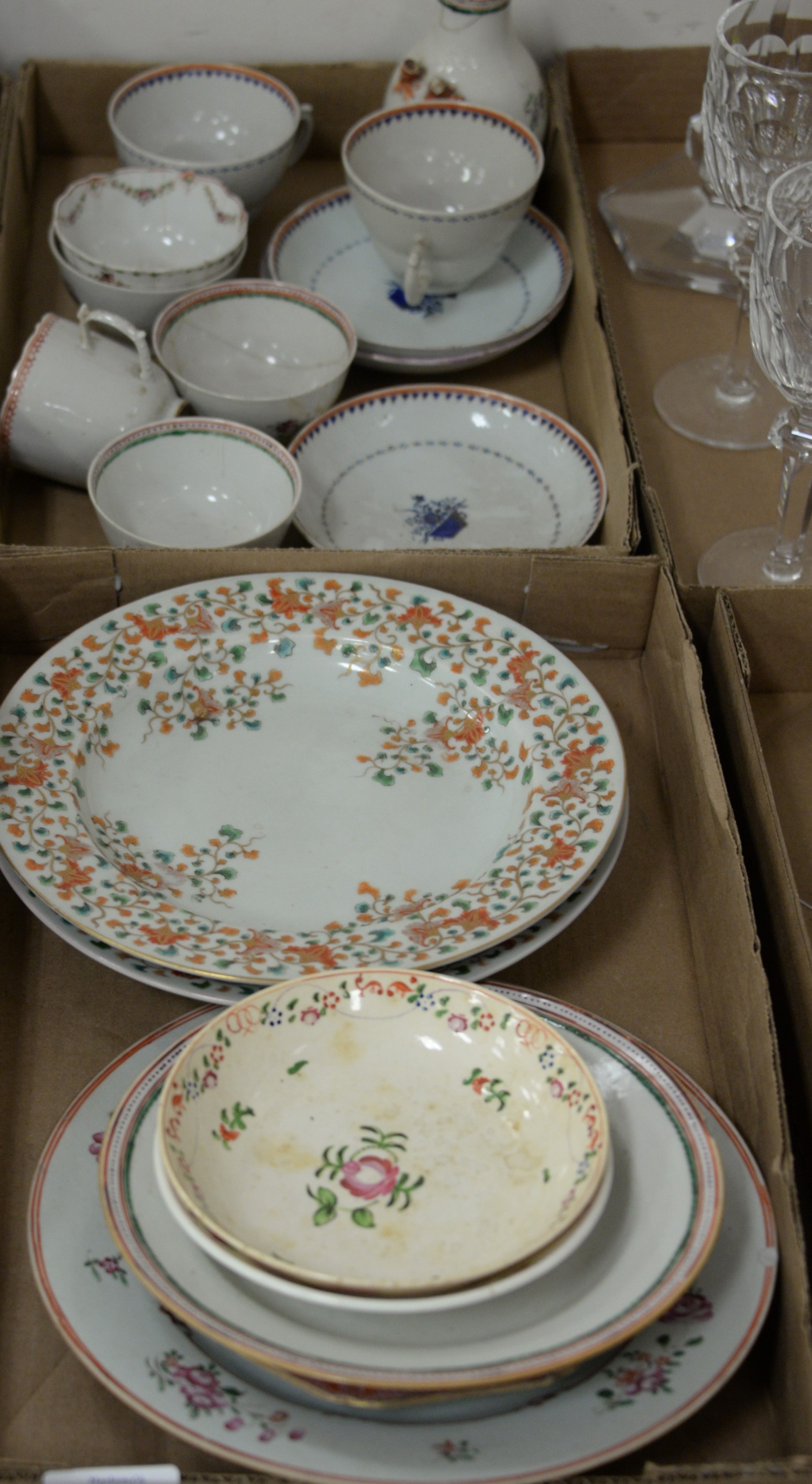Four box lots to include six Waterford stems, salt and pepper shaker, set of four St. Louis Stems, Three piece painted pitcher & two cups, and two sets of blue glasses.