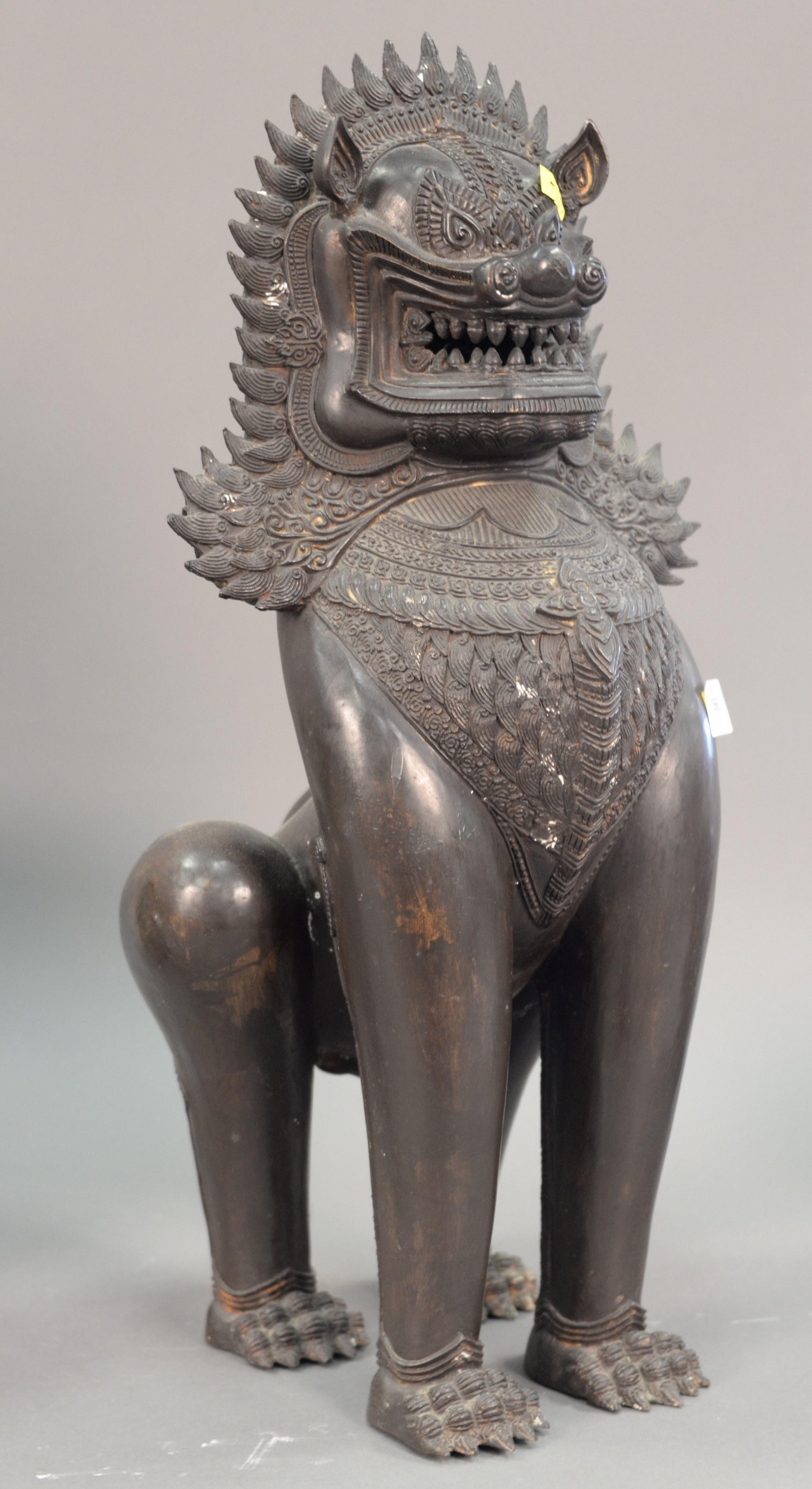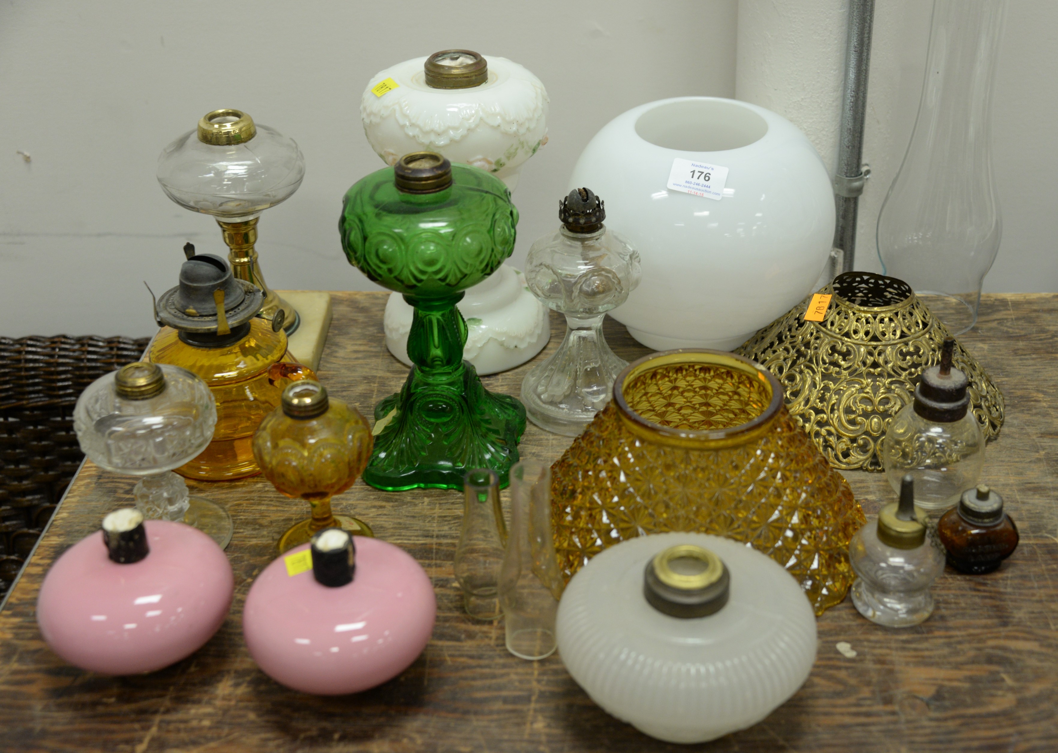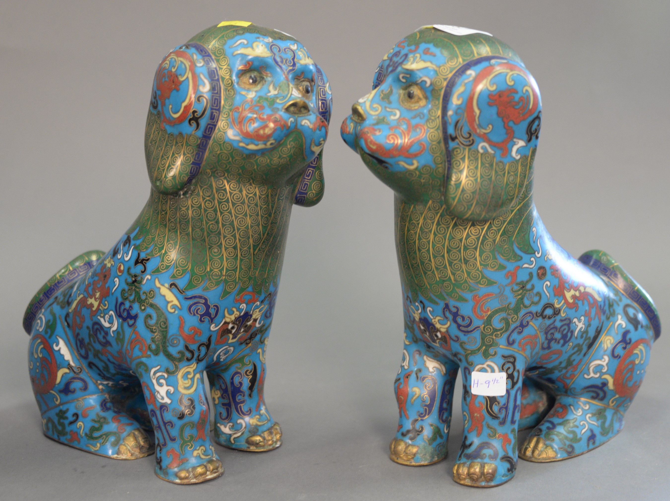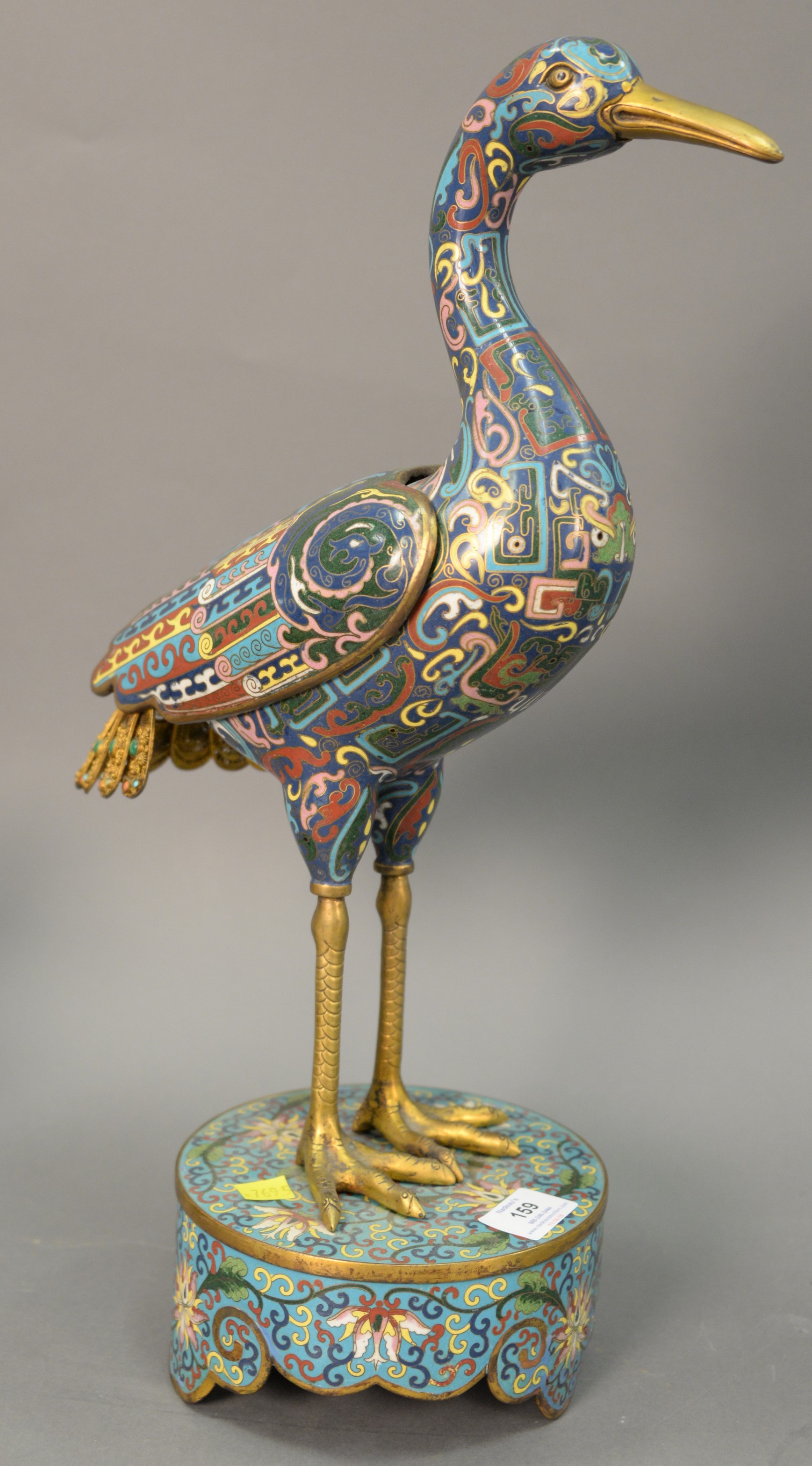 Three champleve pieces including a bronze urn with lotus flowers, large planter, and a vase made into a table lamp with four claw dragon panels. ht. 11 3/4 in. dia. 14 in.