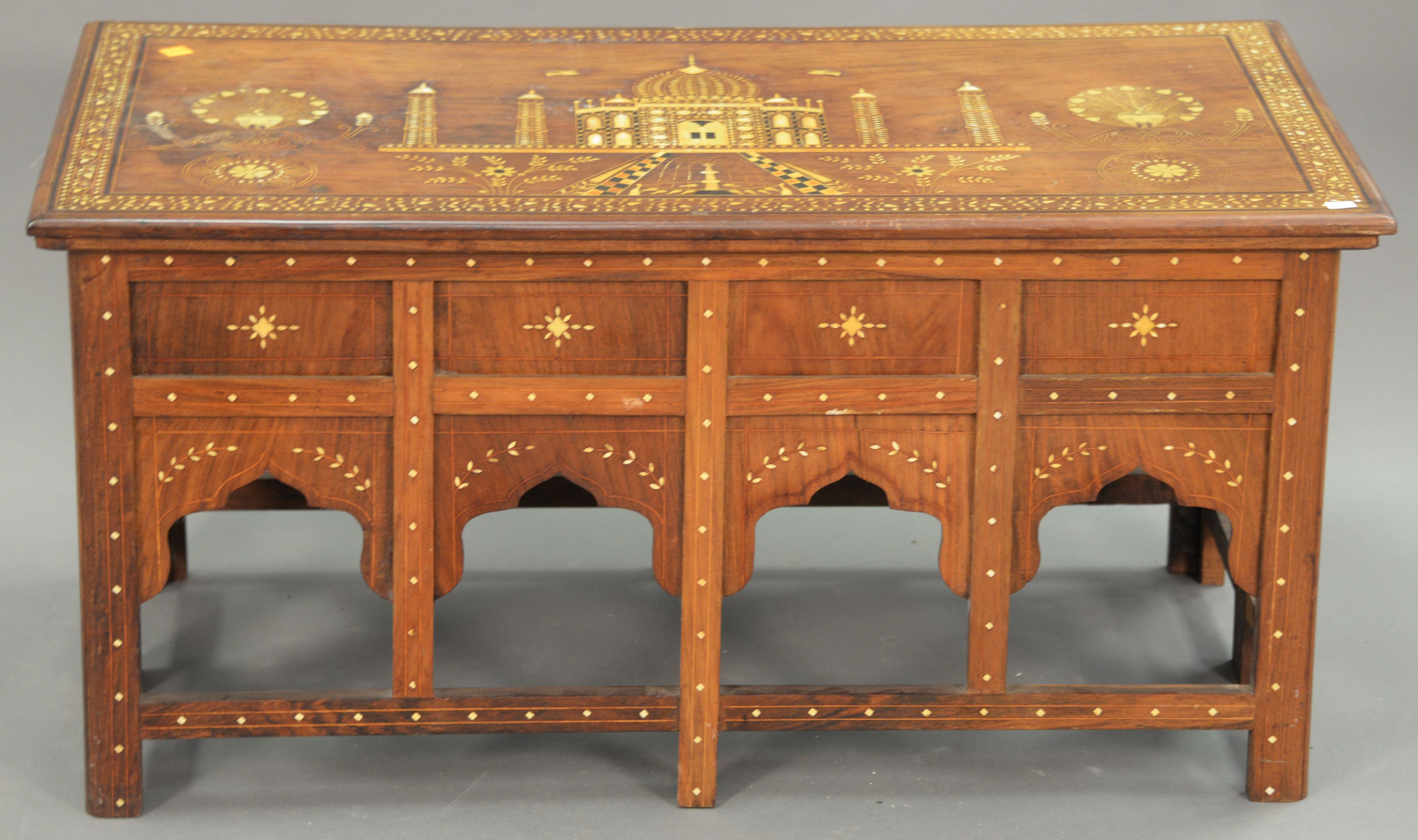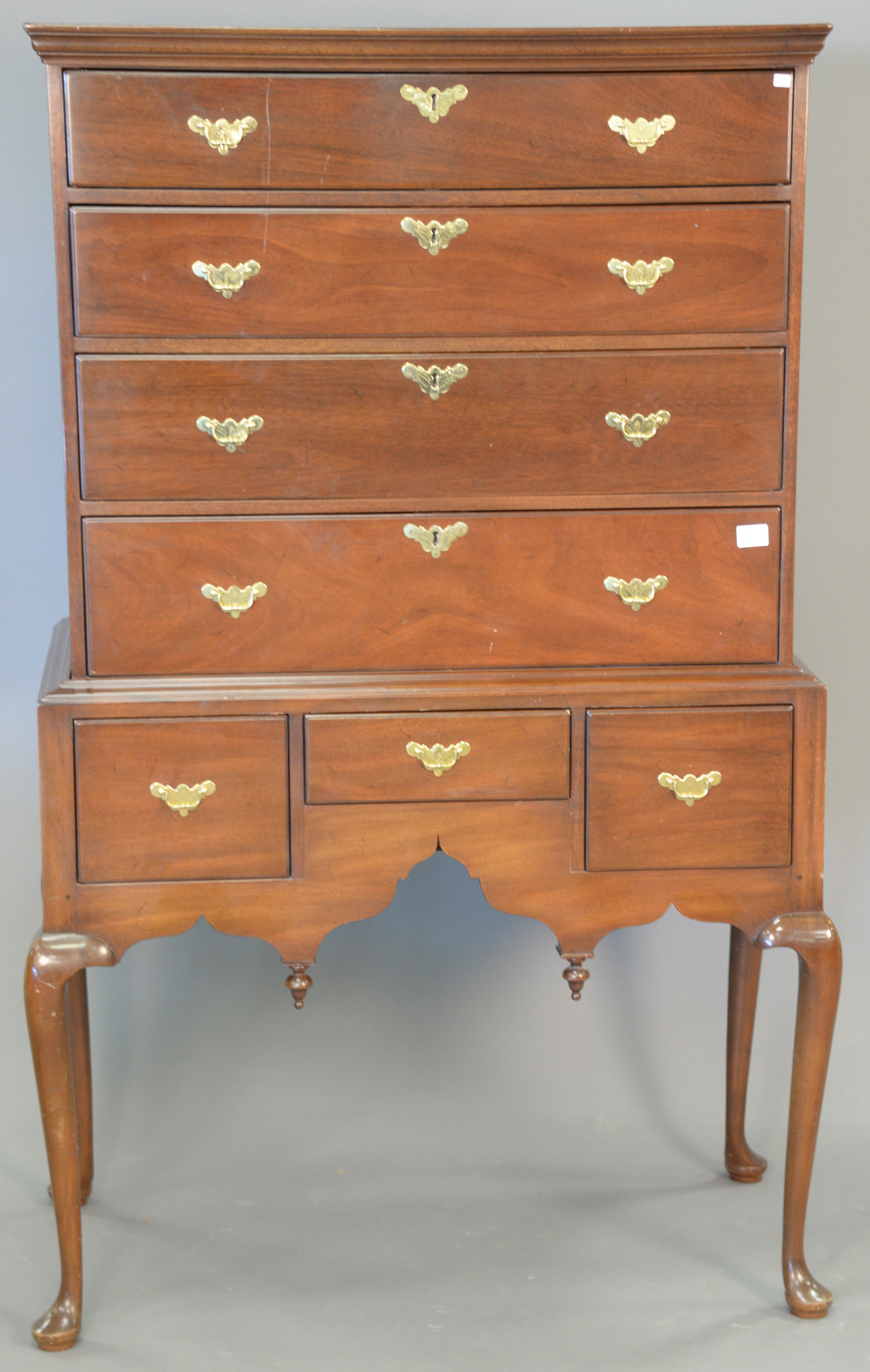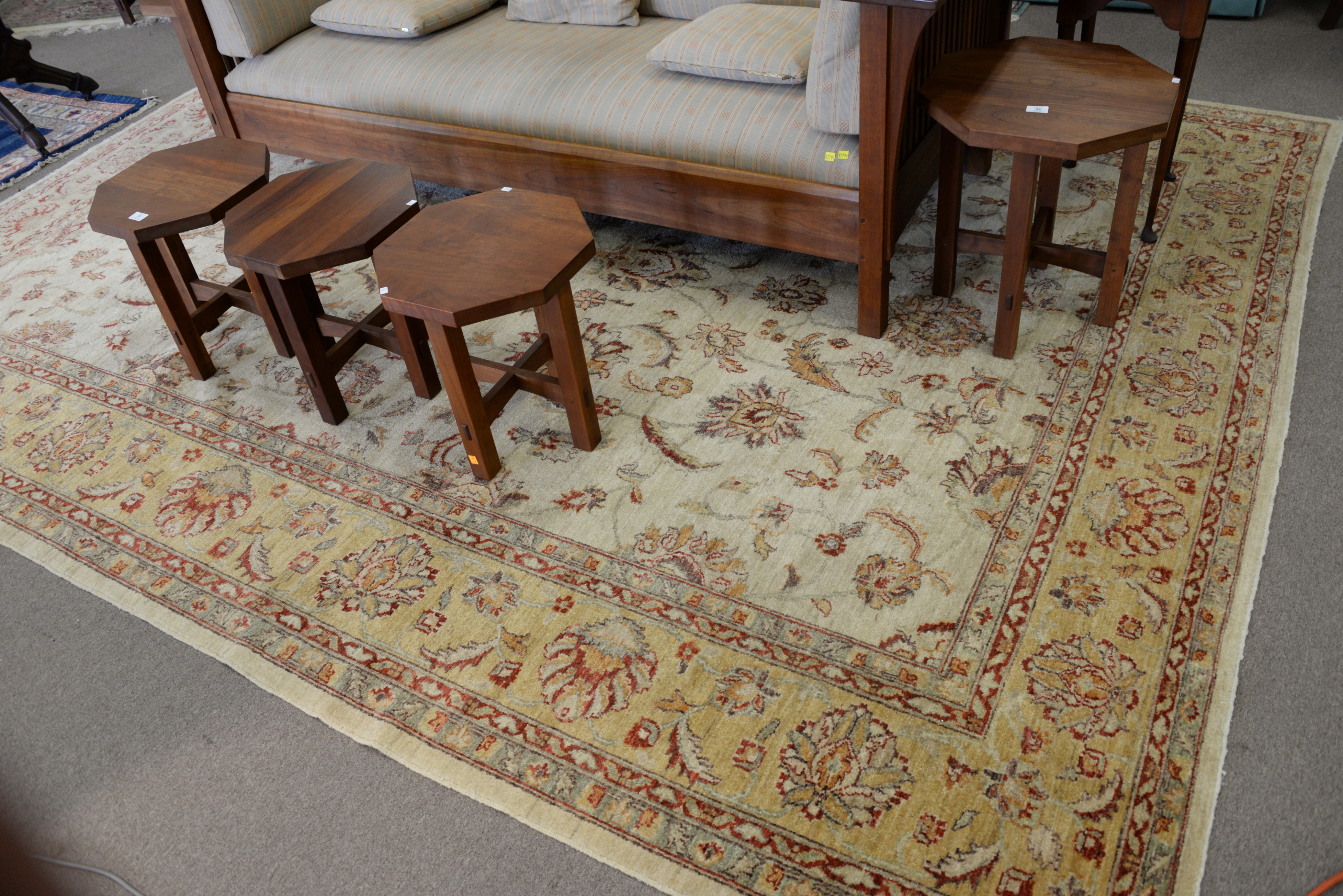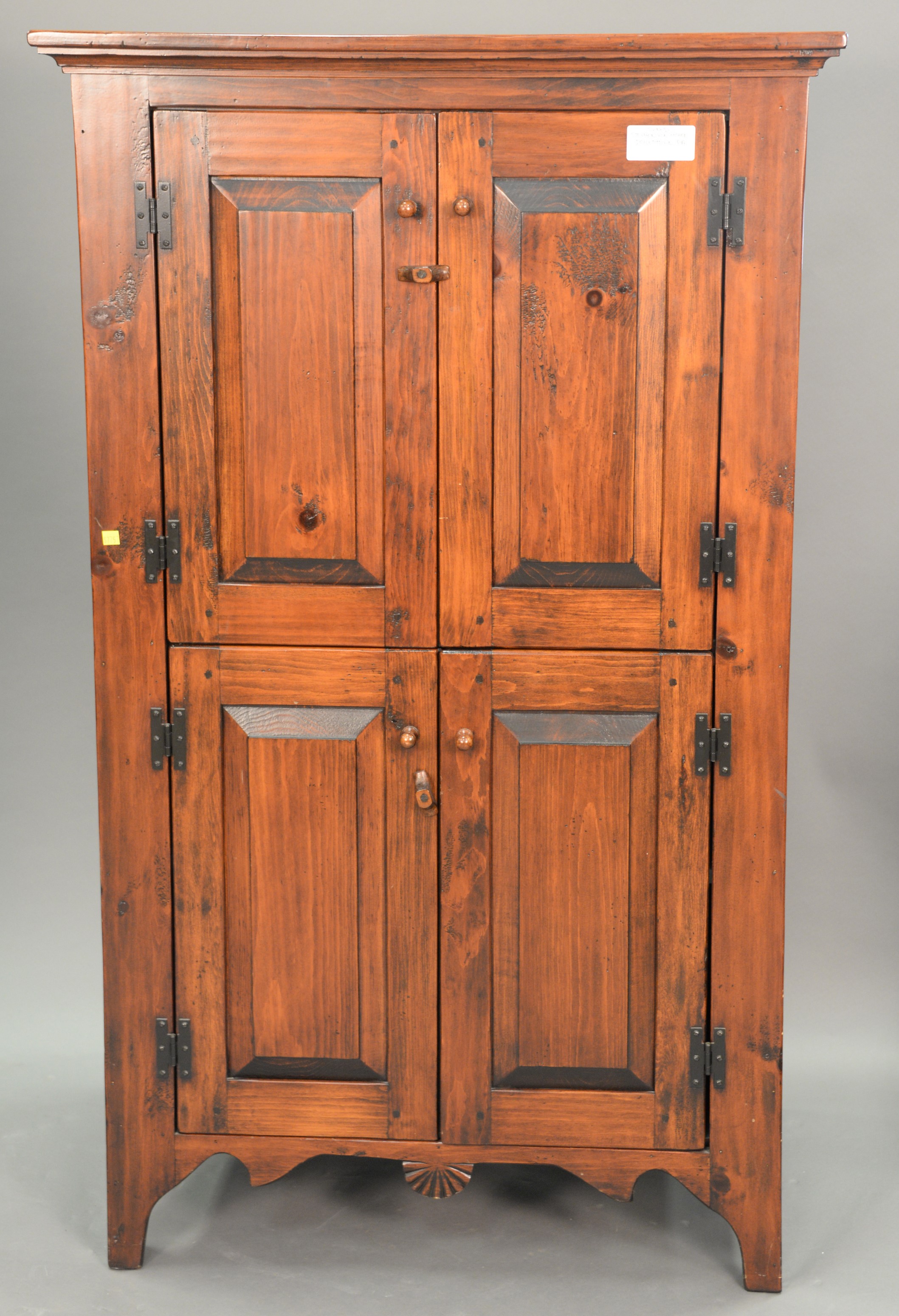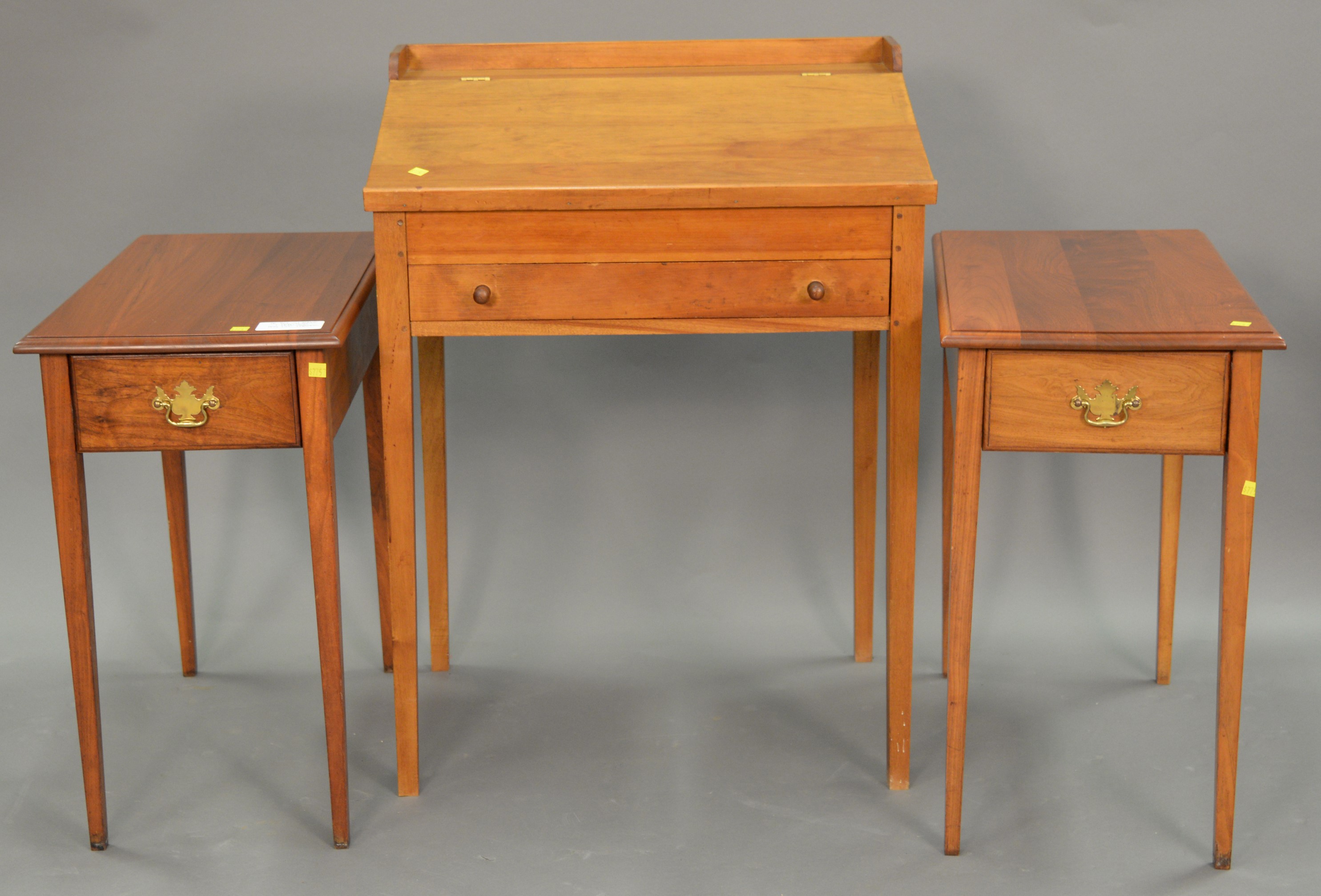 Stephen Von Hohen set of three pine tables along with a linen press. coffee table: ht. 17 in. wd. 48 in. dp. 19 1/2 in., end table: ht. 21 in. wd. 24 in. dp. 18 in.